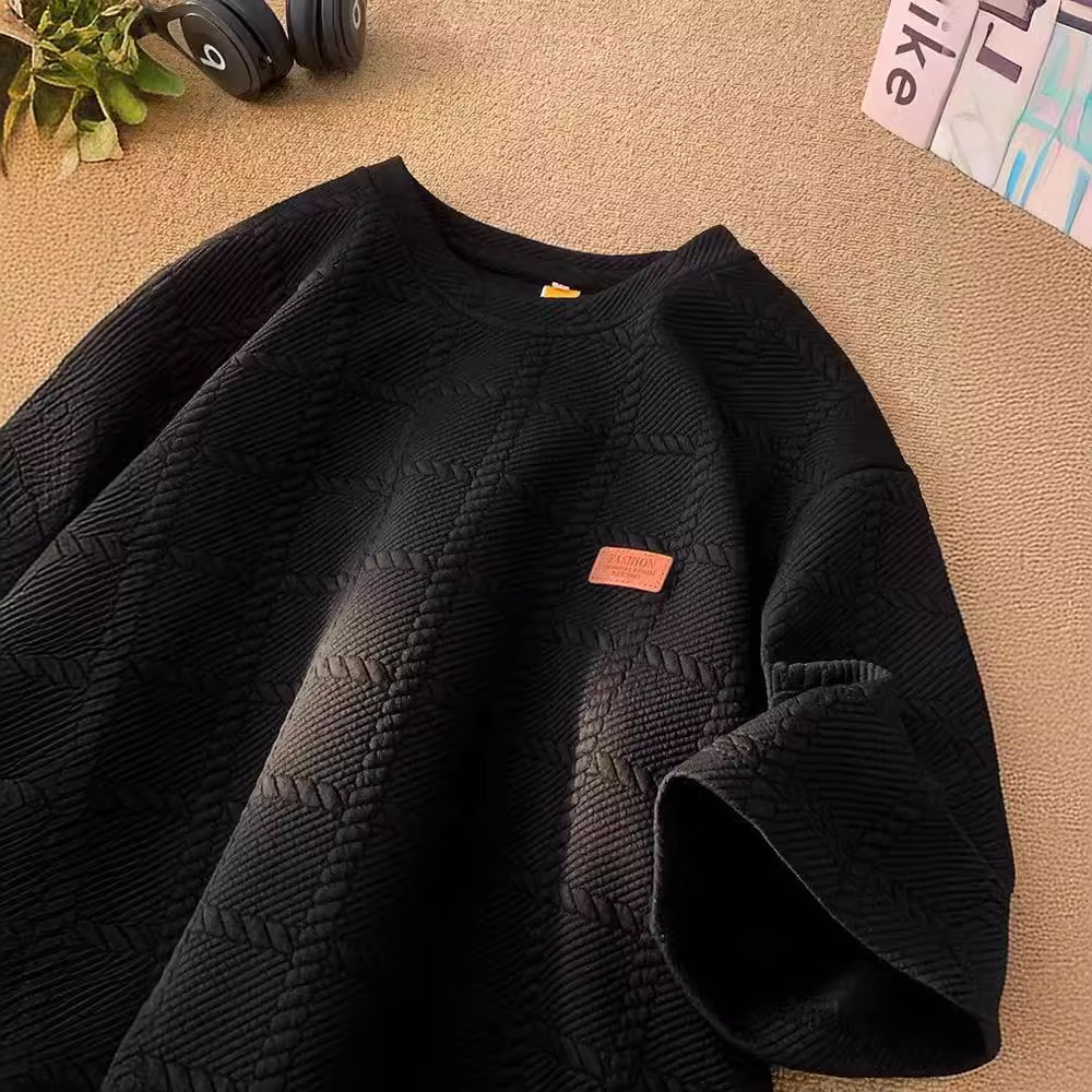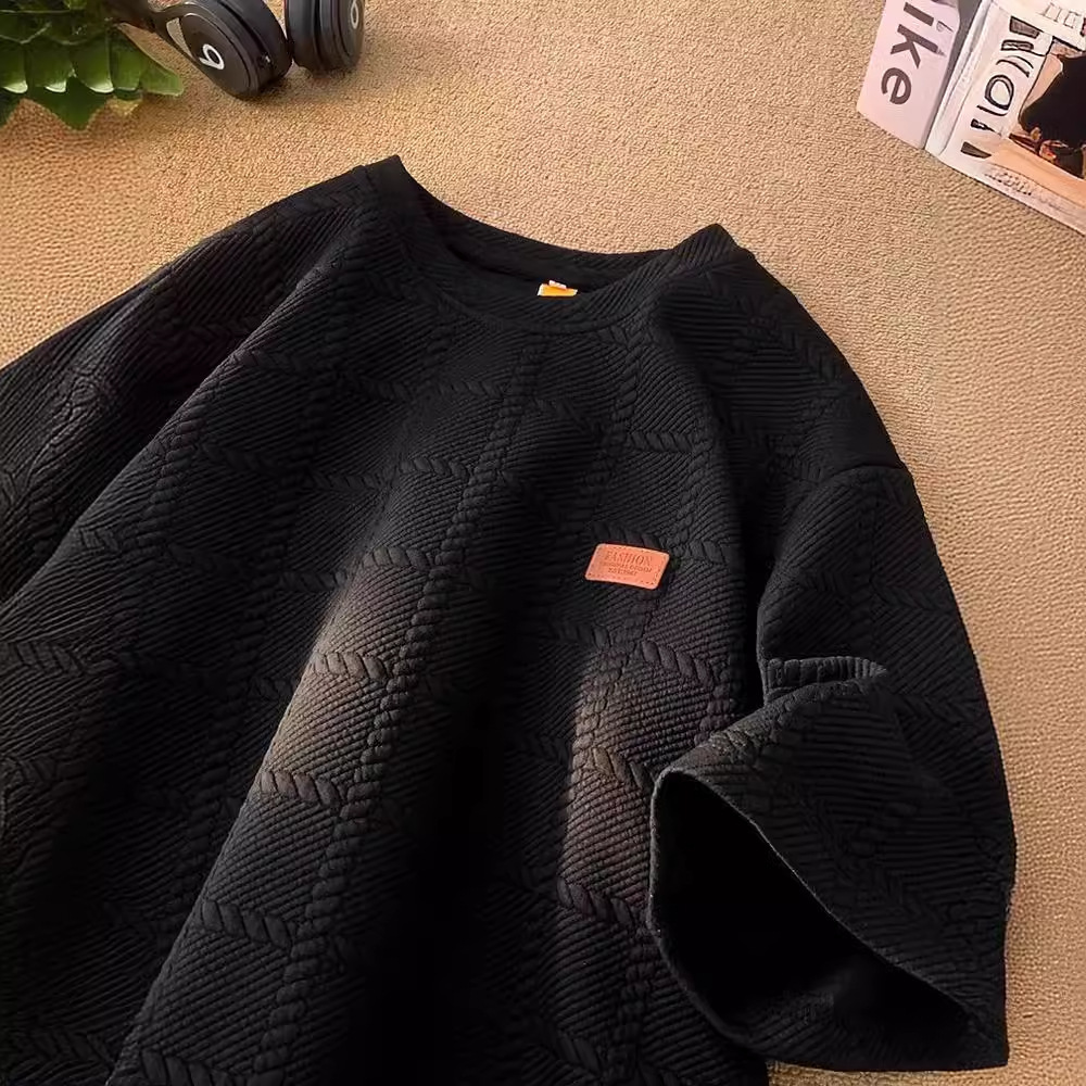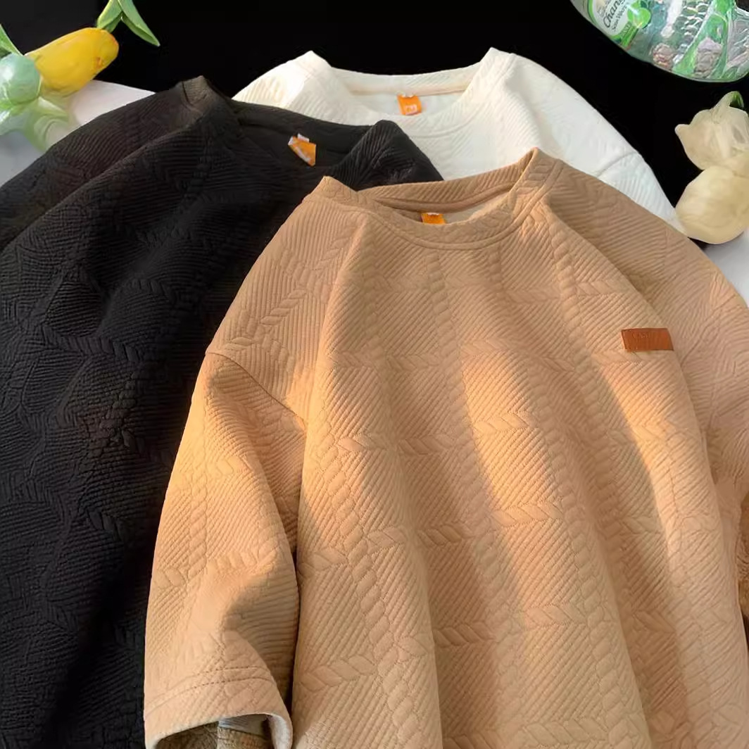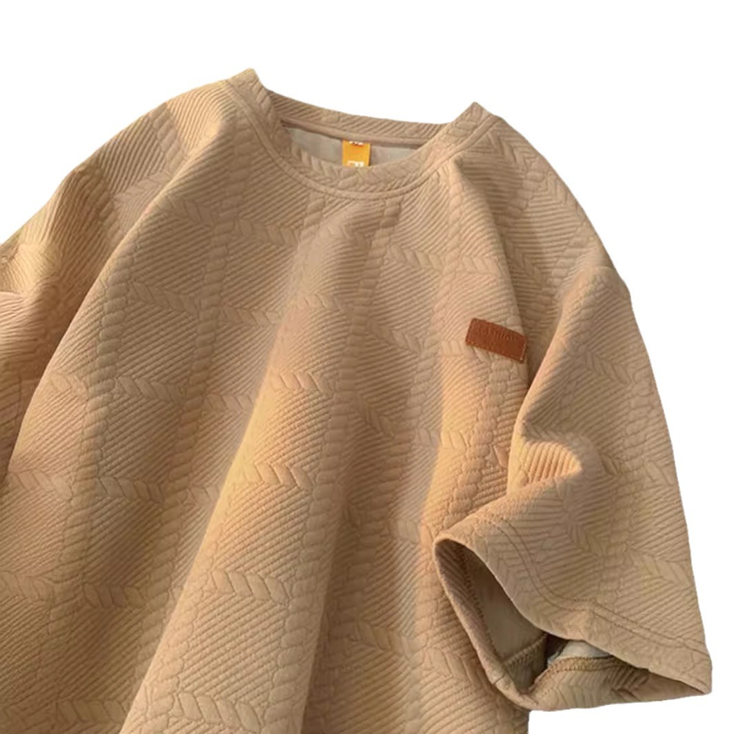 肌理感提花重磅短袖T恤男款夏季潮牌潮流大码宽松圆领休闲半截袖