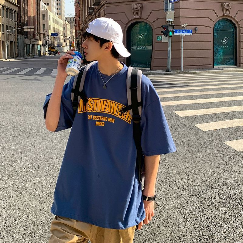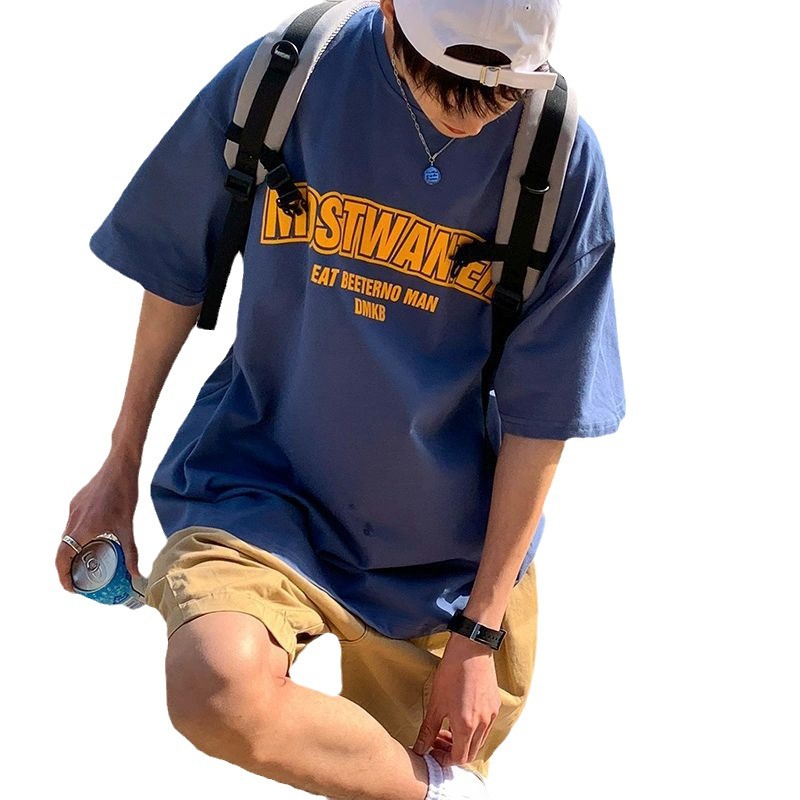 新款短袖t恤男夏季韩版潮流简约半袖上衣港风宽松休闲潮牌体恤衫