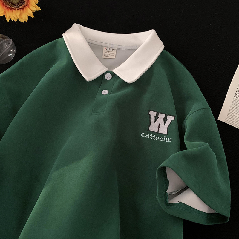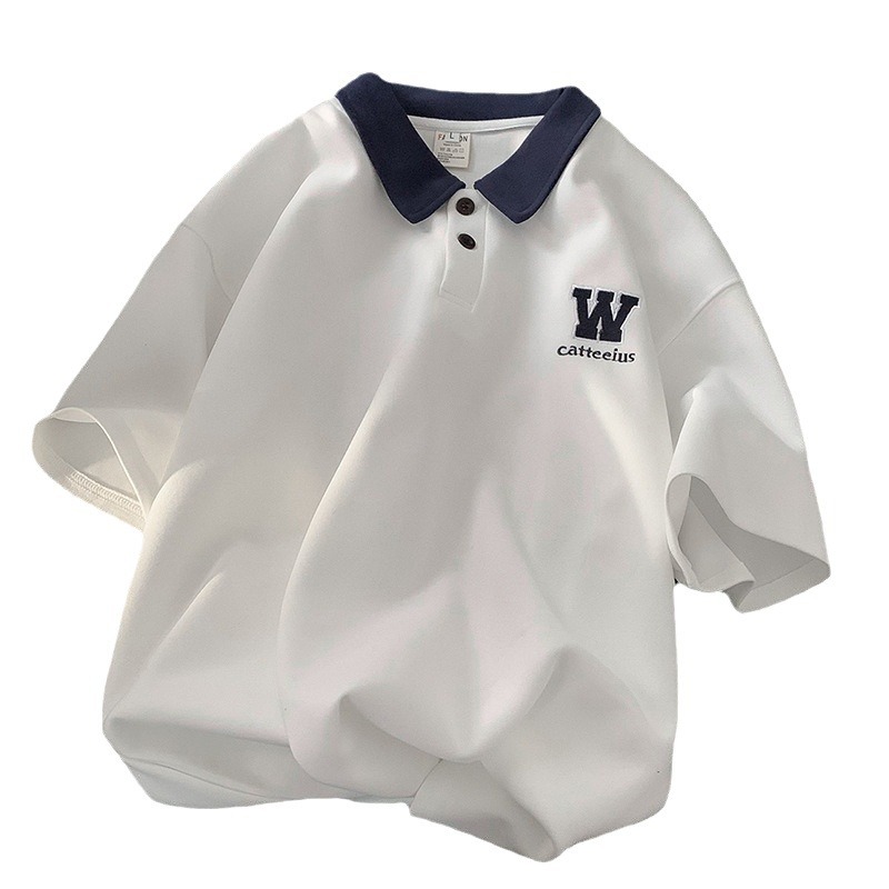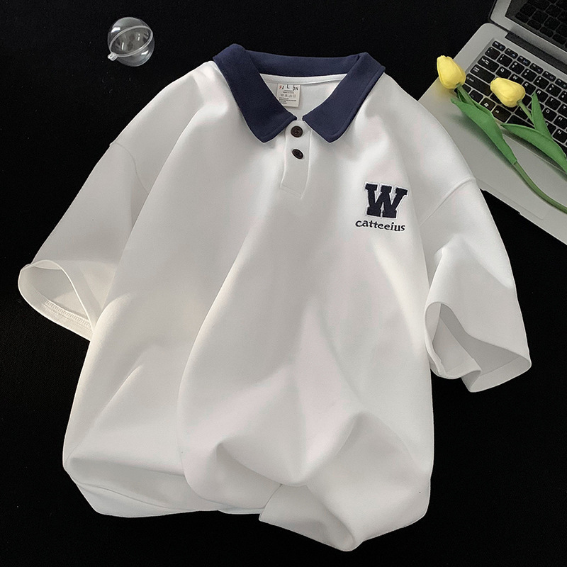 polo衫短袖男夏季宽松刺绣重磅纯色青少年t恤学院风撞色半袖体恤