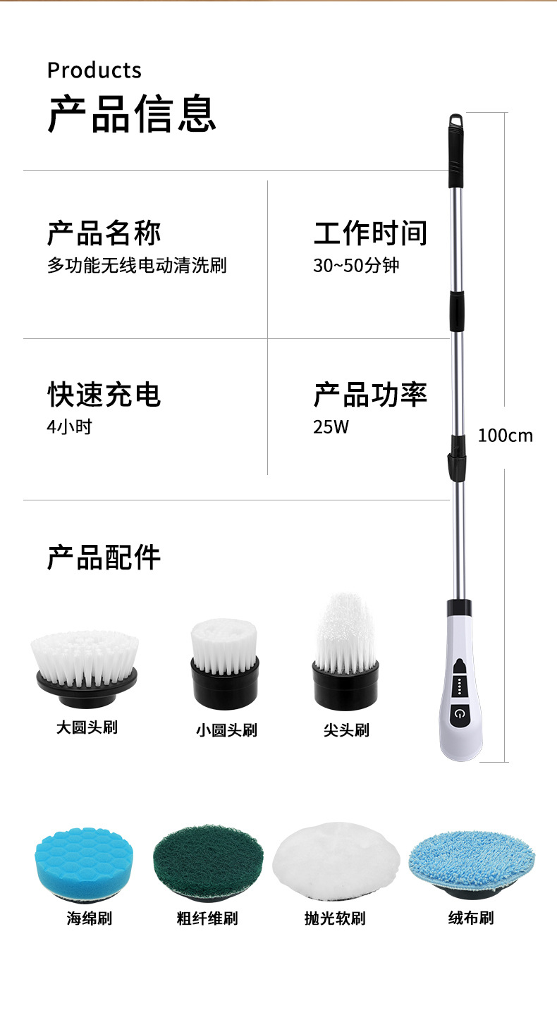 7合1新款电动清洁刷高低两档厨房卫生间多功能清洁器无线长柄充电