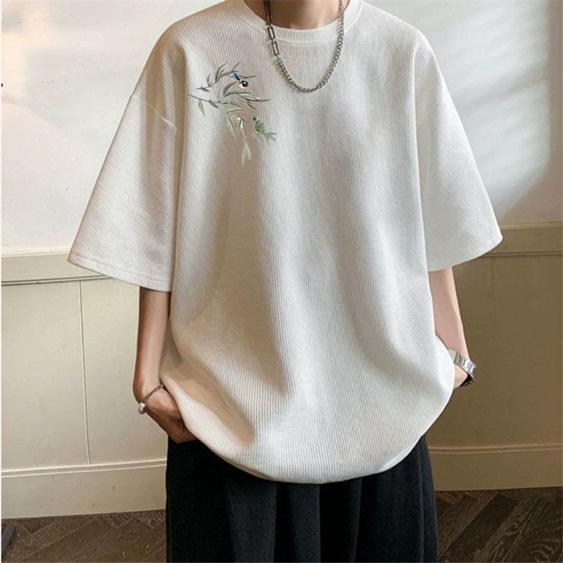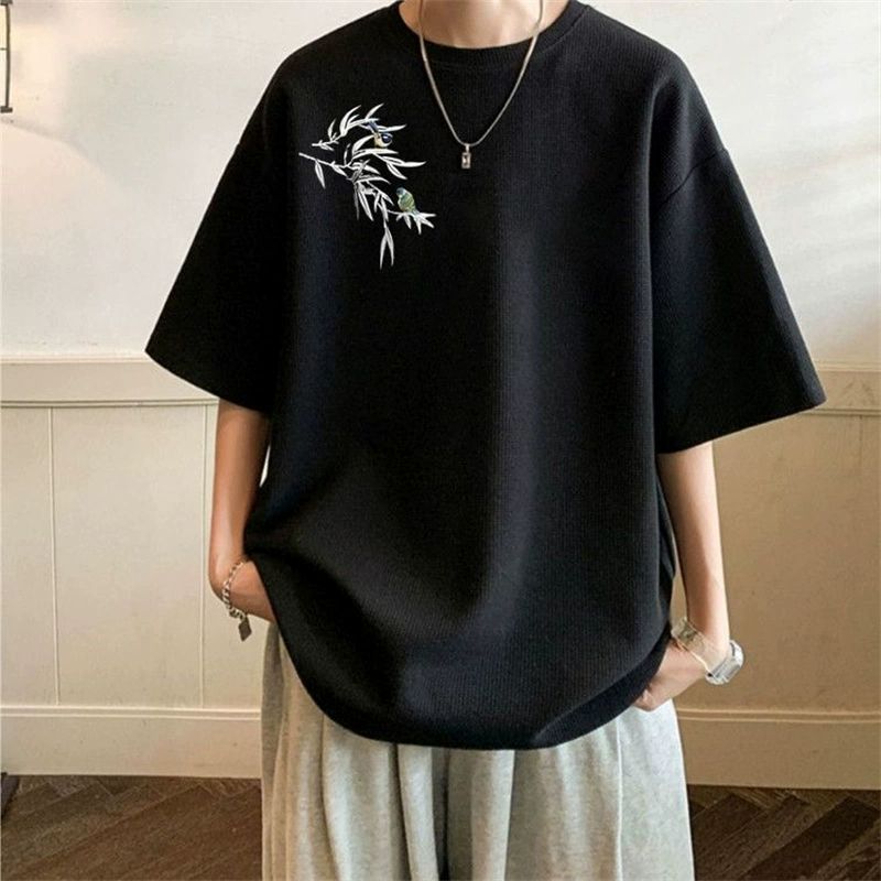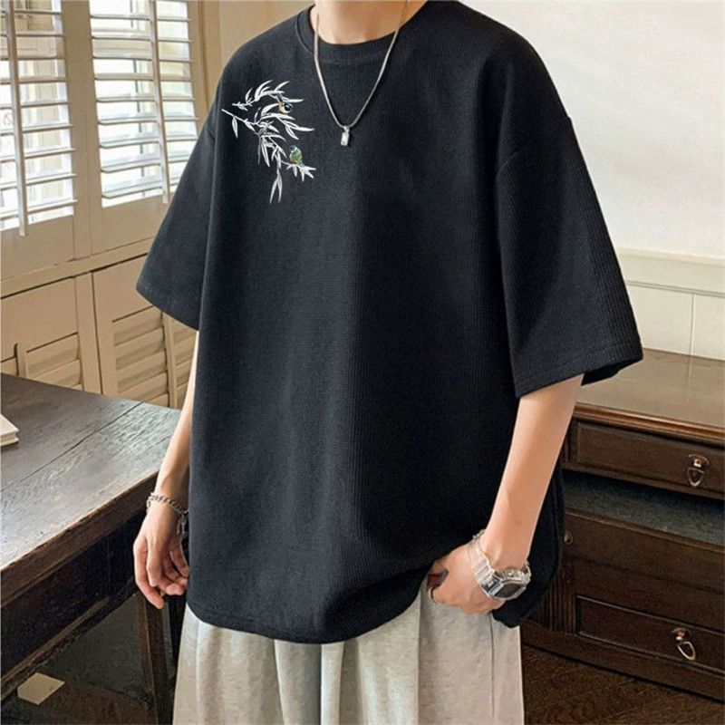 大码男装华夫格短袖T恤男款新款上衣服夏季潮牌宽松潮流百搭大码