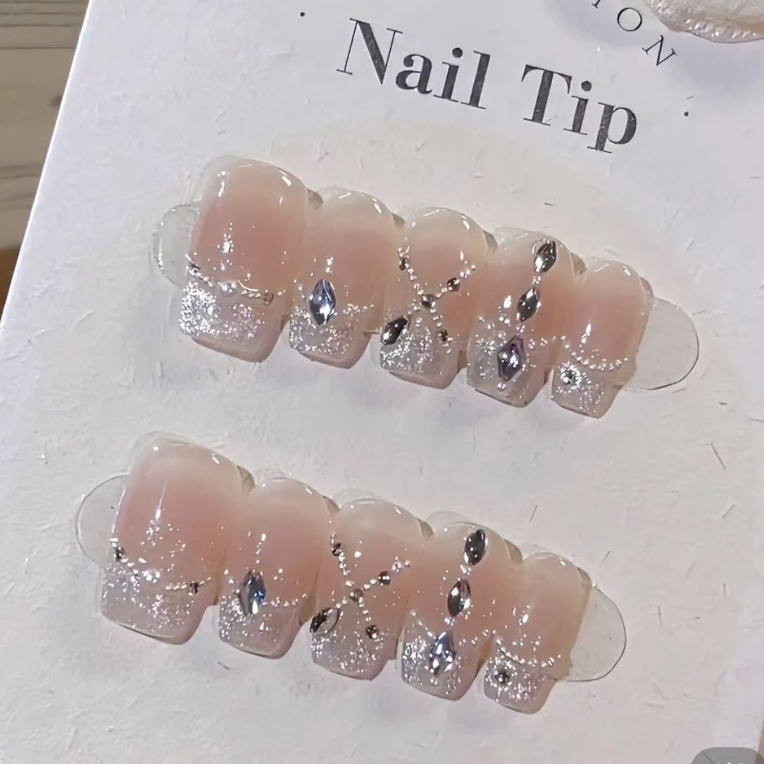 纯手工美甲穿戴甲假指甲贴片美甲成品日式可爱爆闪轻奢闪钻小红书
