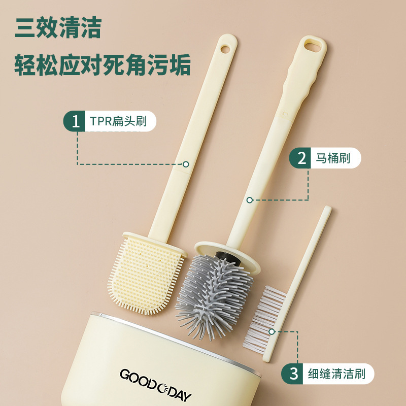 免打孔三合一套装壁挂马桶刷家用无死角TPR刷毛厕所清洁刷带底座