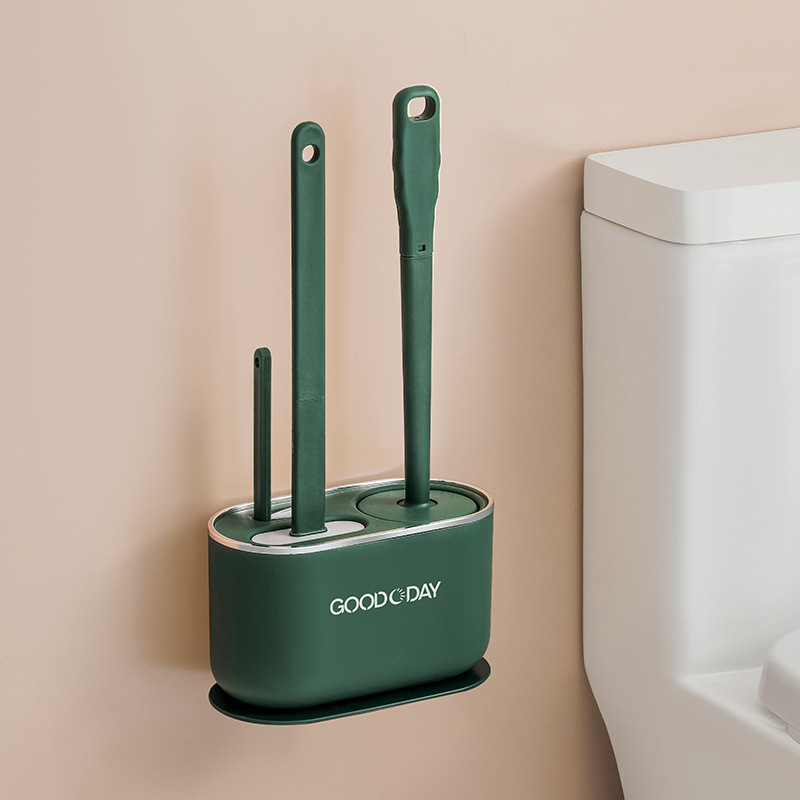 墨绿色三合一套装壁挂式马桶刷