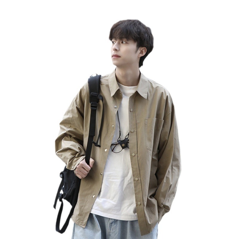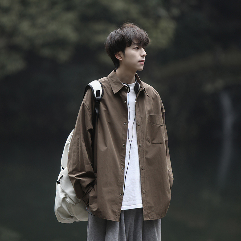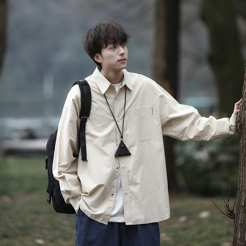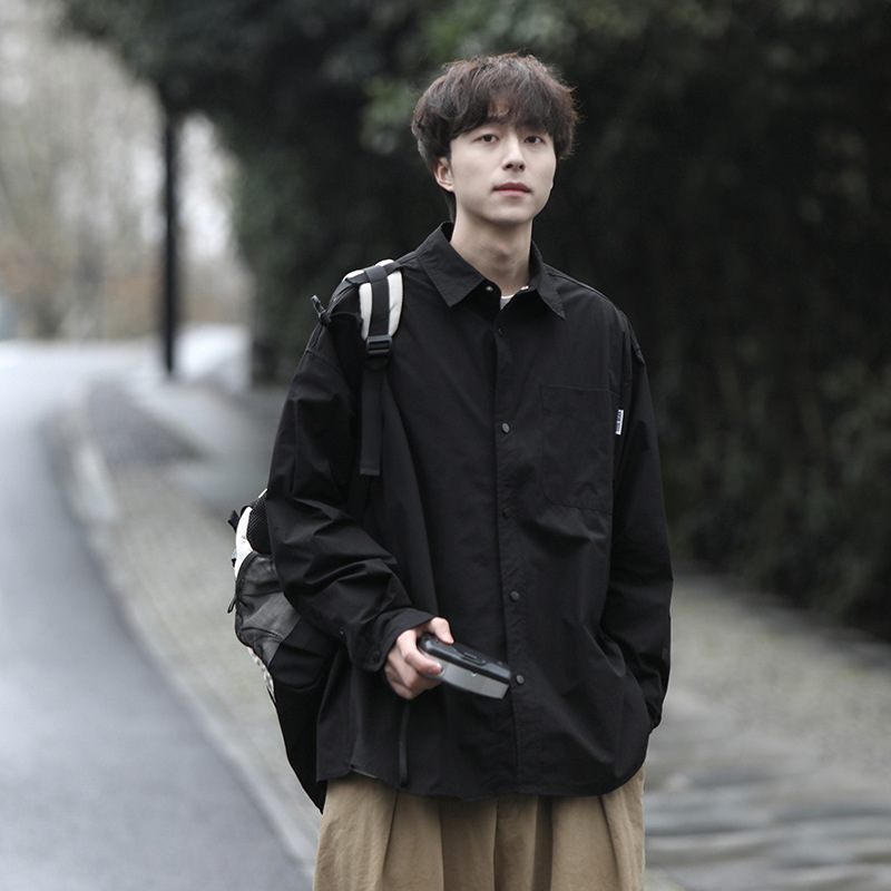 日系复古长袖衬衫男春秋设计感宽松休闲衬衣美式高街潮牌痞帅外套