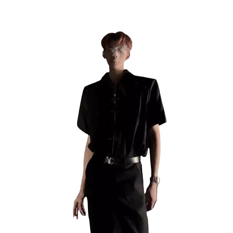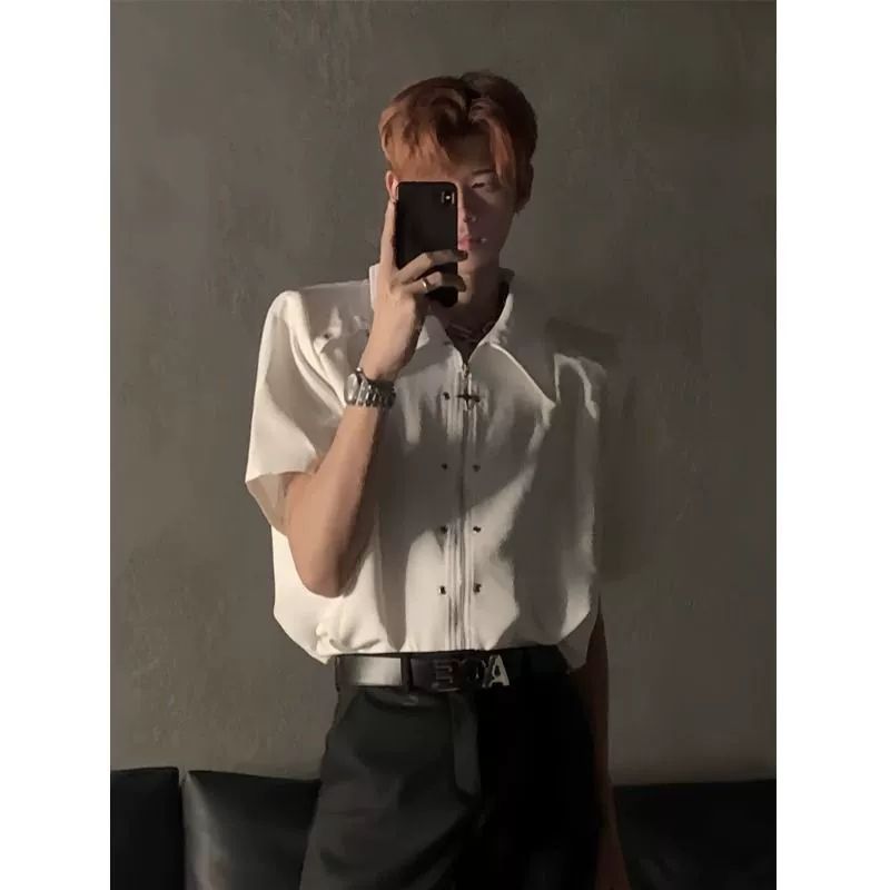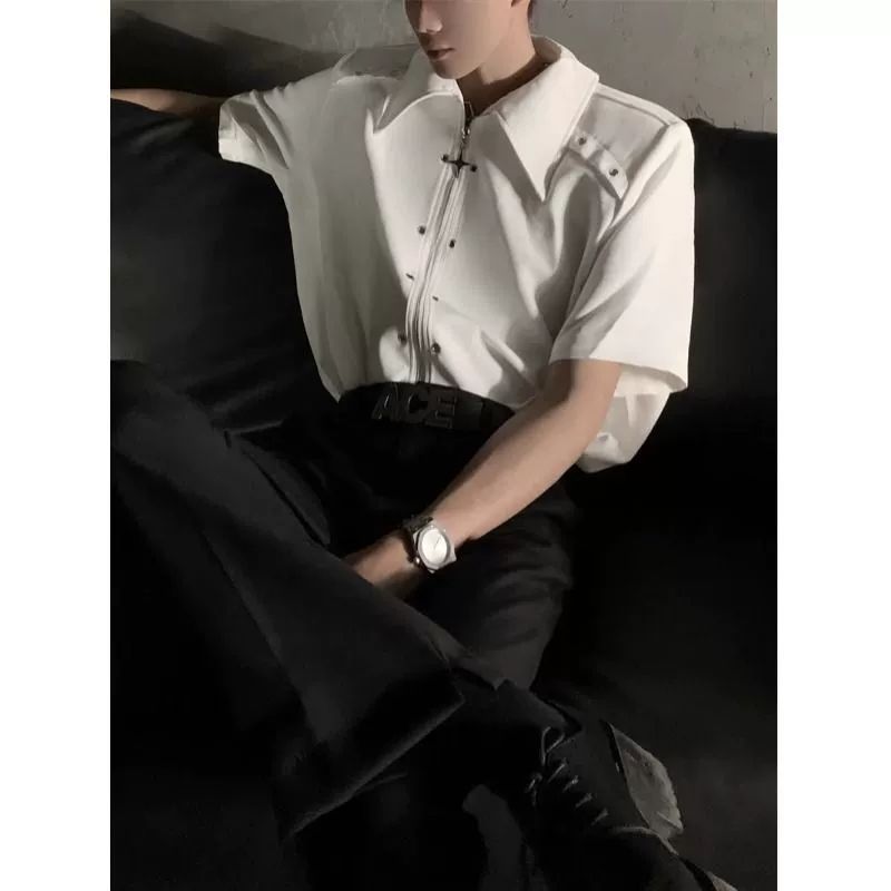 夏季小众金属解构设计感拉链衬衫男女潮牌高级感痞帅垫肩短袖衬衣