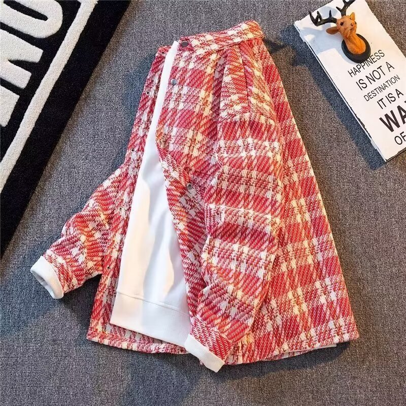 格子针织小香风外套男春秋季透气潮牌百搭潮流衬衫男士休闲夹克男