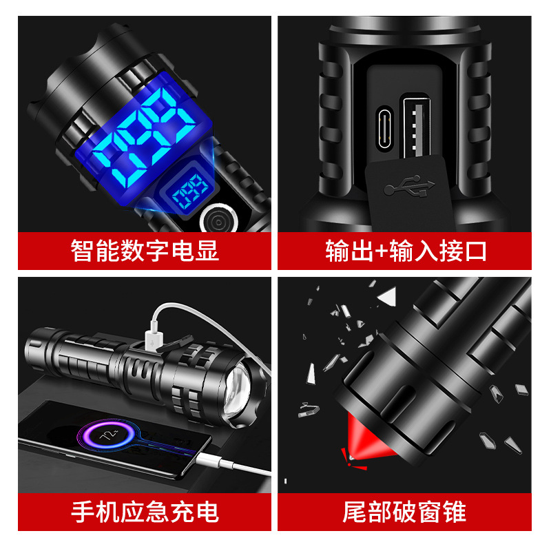 充电超亮数显手电户外远射铝合金变焦白激光手电筒