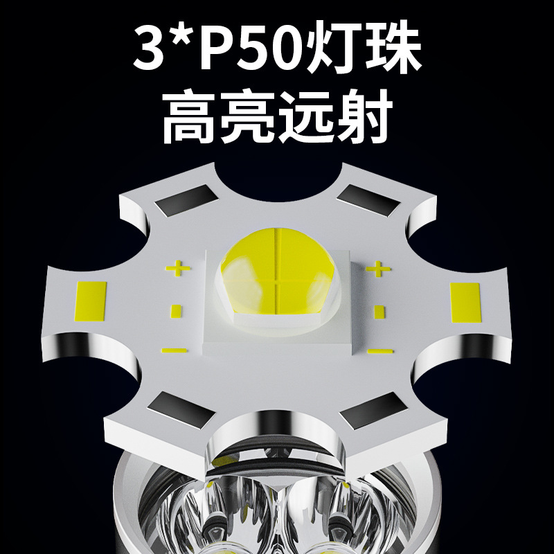 强光手电筒家用充电便携长续航远射变焦户外防水侧灯