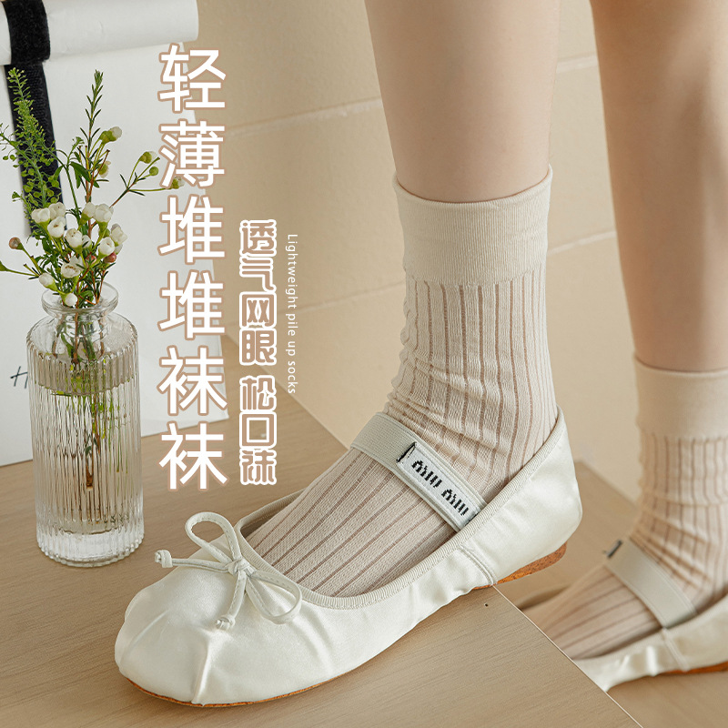 堆堆袜子女透气网眼中筒夏季堆堆袜松口月子袜网眼宽松袜口袜
