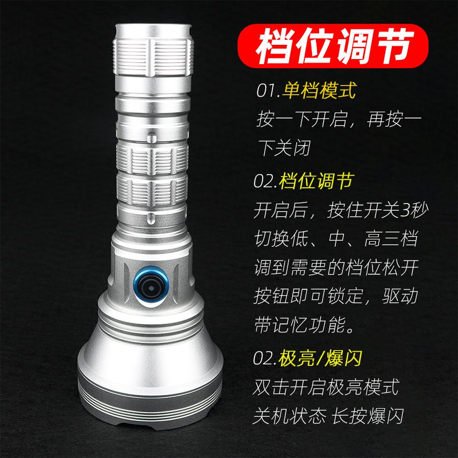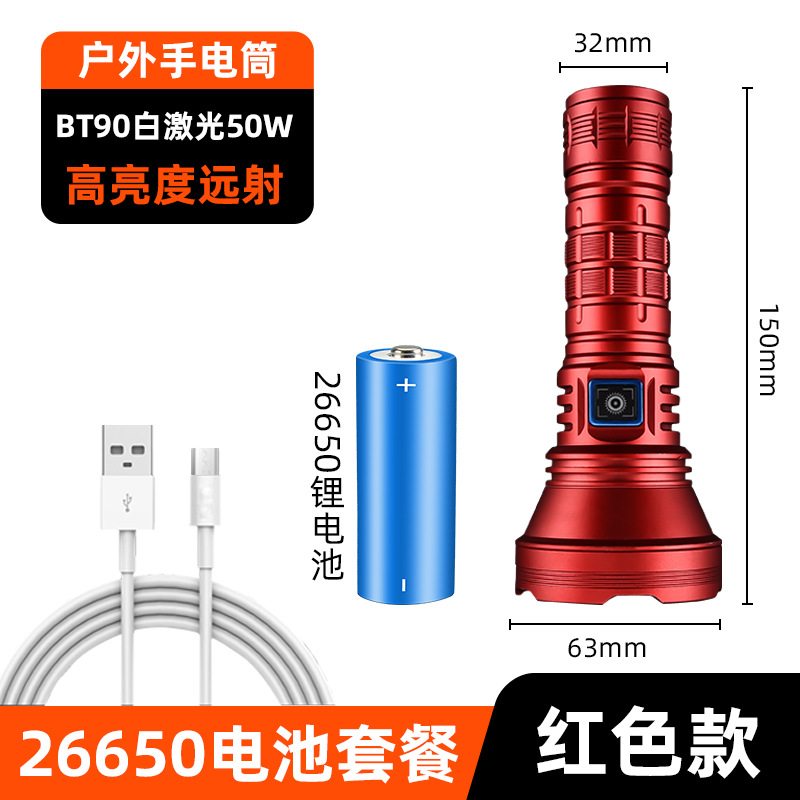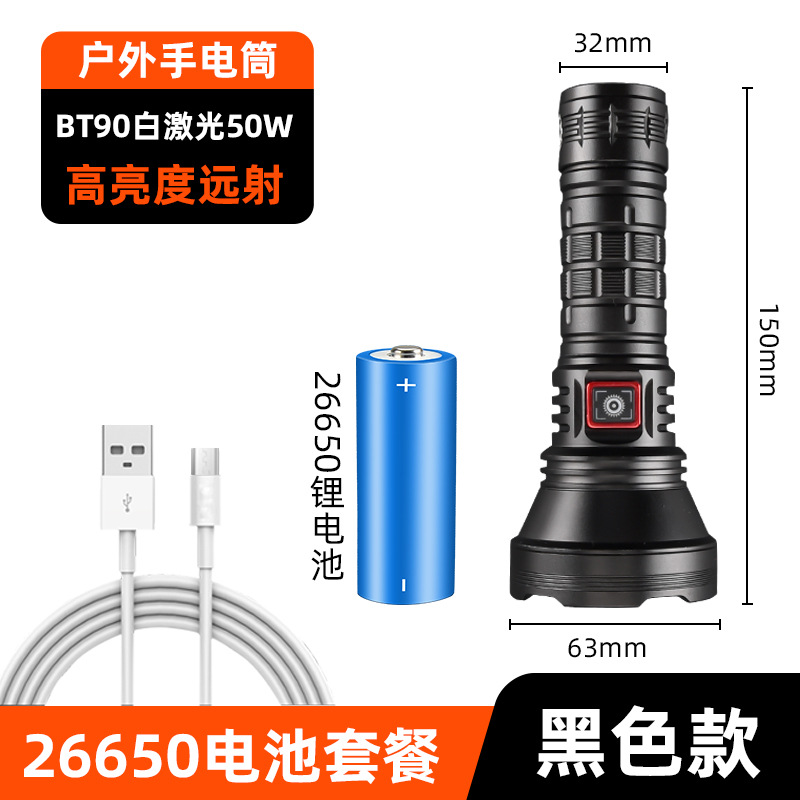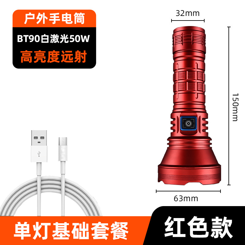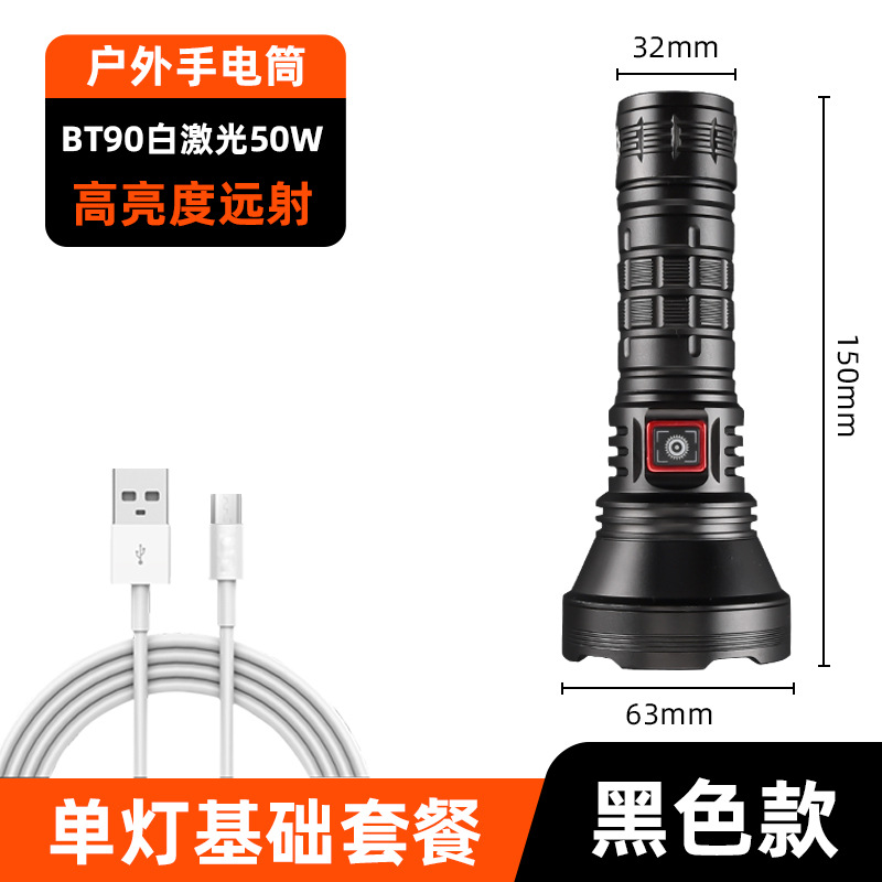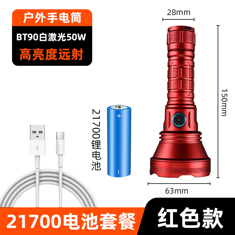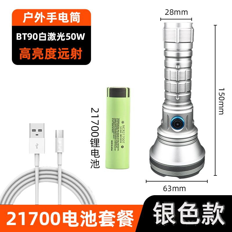 白激光手电筒户外照明大功率超亮远射定焦type-c可充电便携式