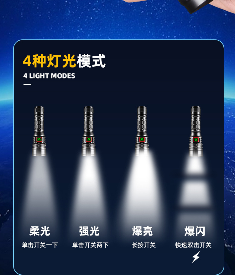 强光手电筒超亮远射21700可充电G40定焦户外便携一体仓