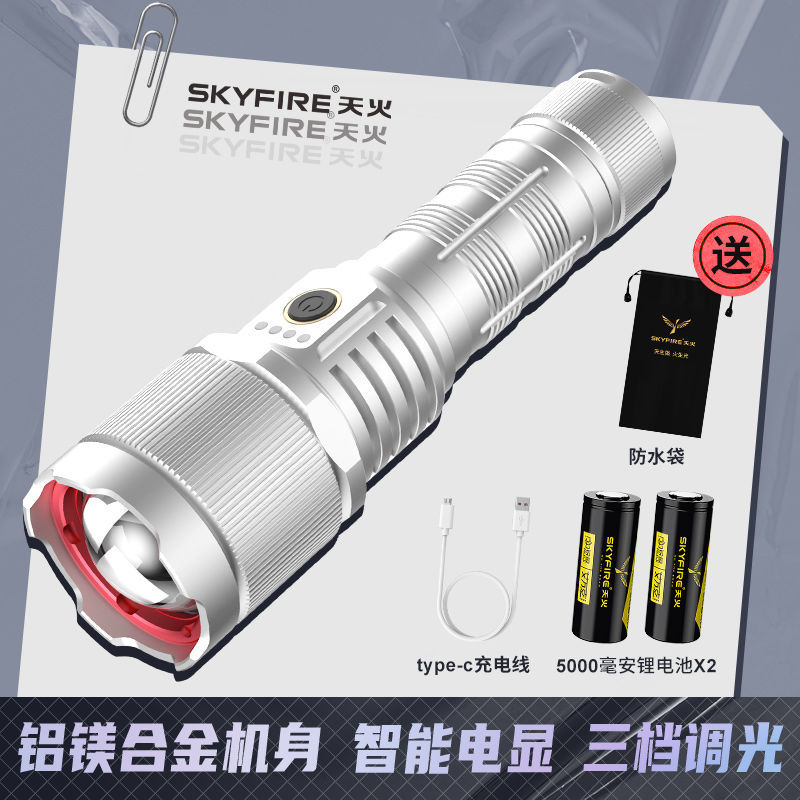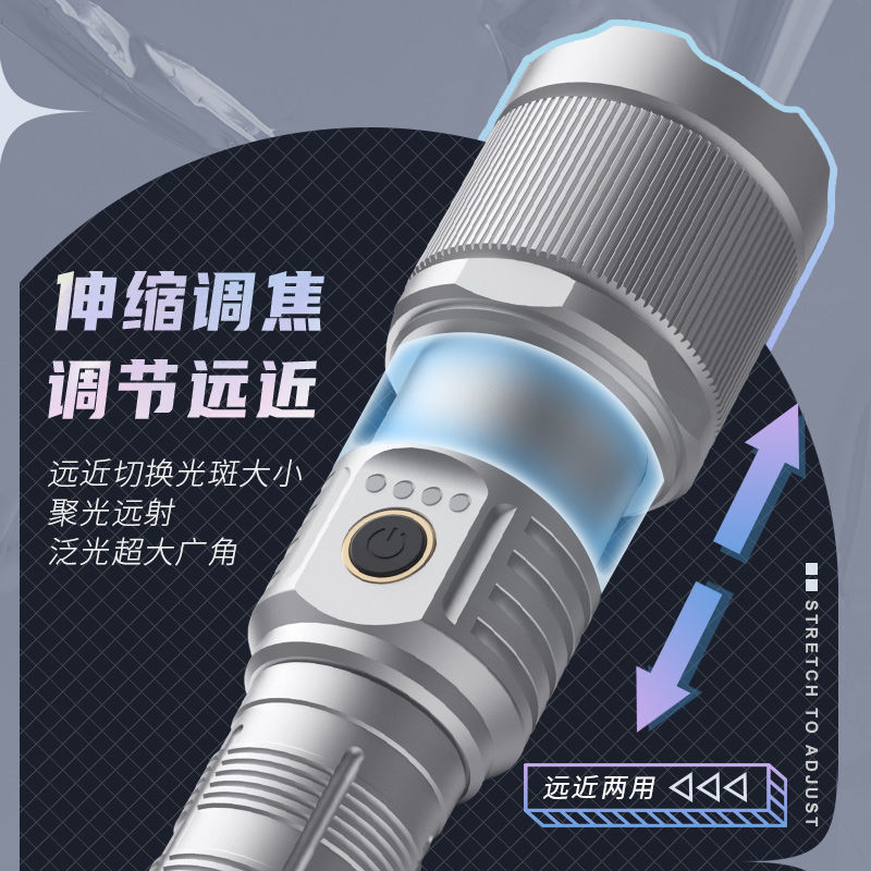 白激光强光超亮手电筒户外远射超强流明大功率充电超亮