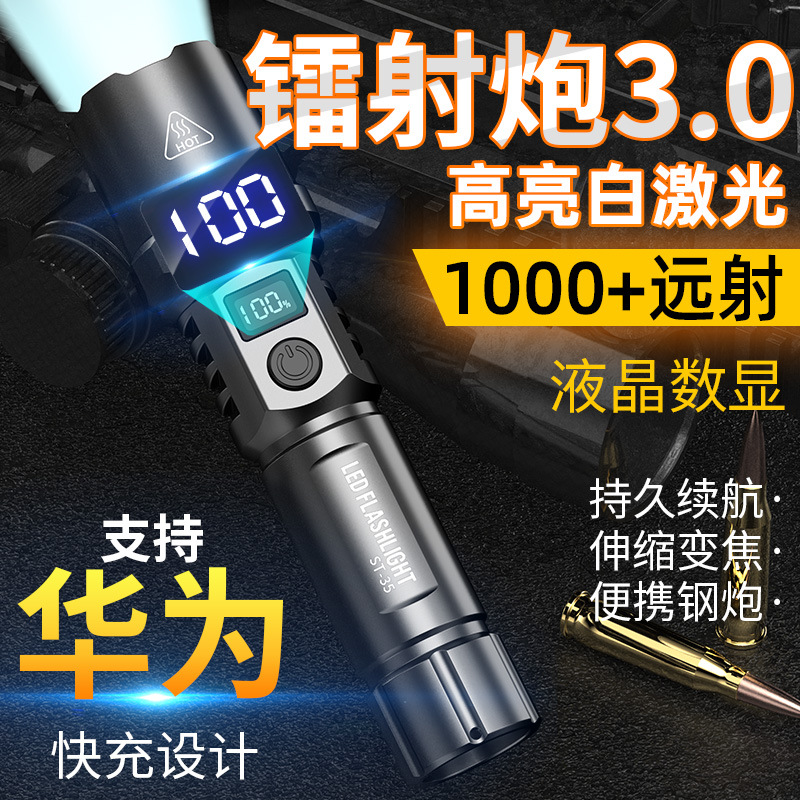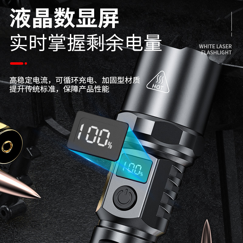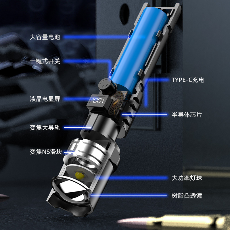大功率手电筒Type-c便携充电户外远射灯伸缩调焦显示白光电量