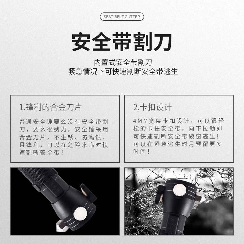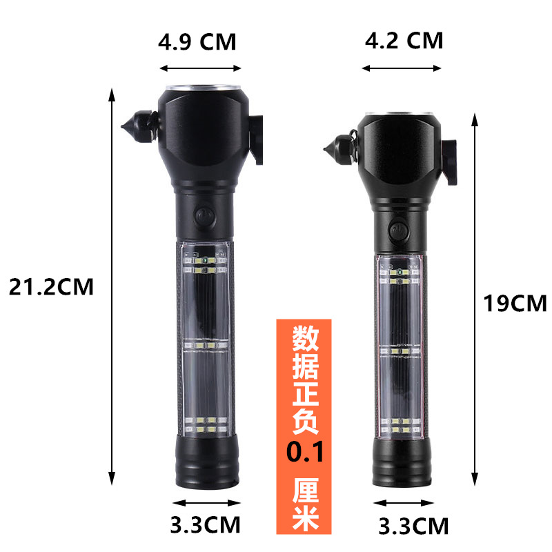 强光太阳能户外多功能手电筒安全锤消防应急自救强光报警逃生锤