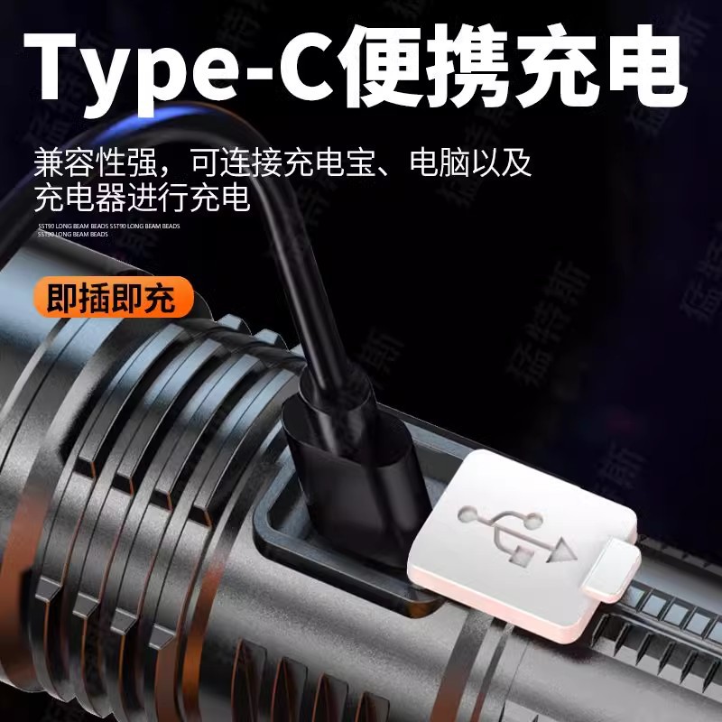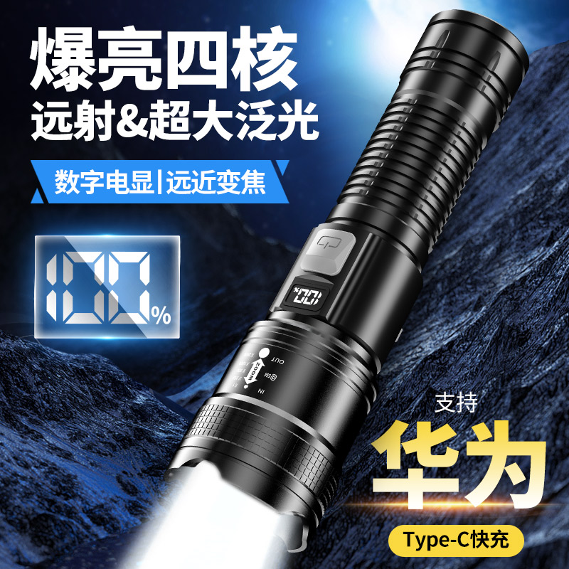 手电筒强光充电超亮远射户外家用便携镭射儿童led灯