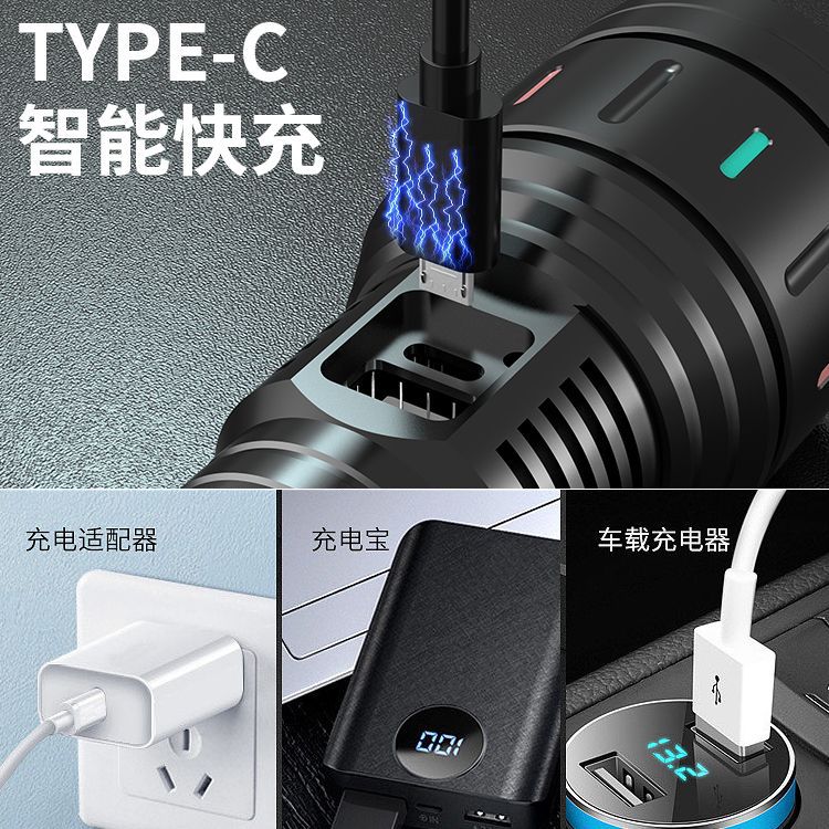 手电筒强光充电远射超亮家用防身户外便携小探照灯led变焦