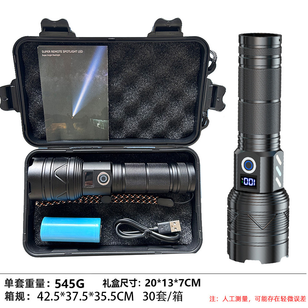 多功能战术手电筒强光聚光炮户外变焦数显充电20瓦白激光手电