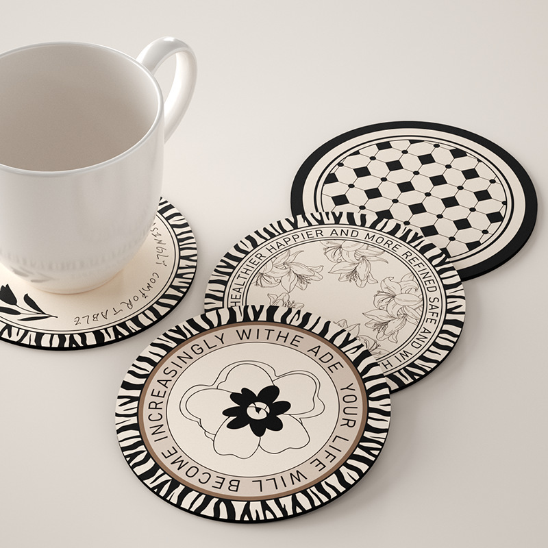 黑白复古吸水杯垫简约硅藻泥隔热餐垫轻奢高级感碗盘垫咖啡垫茶杯