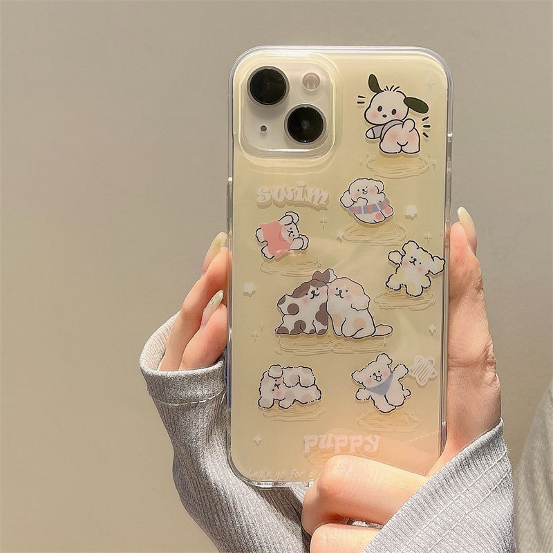 ins卡通可爱迷你小狗适用苹果14ProMax手机壳创意iPhone15新款12