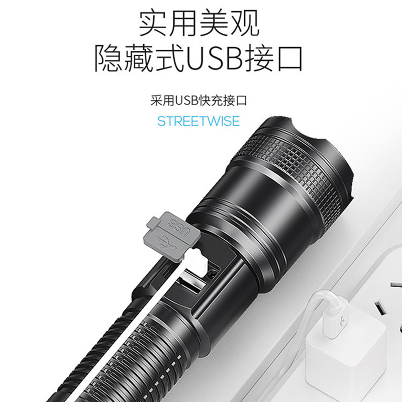 户外巡逻聚光远射强光手电筒便携充电小型拉伸缩批发泛光
