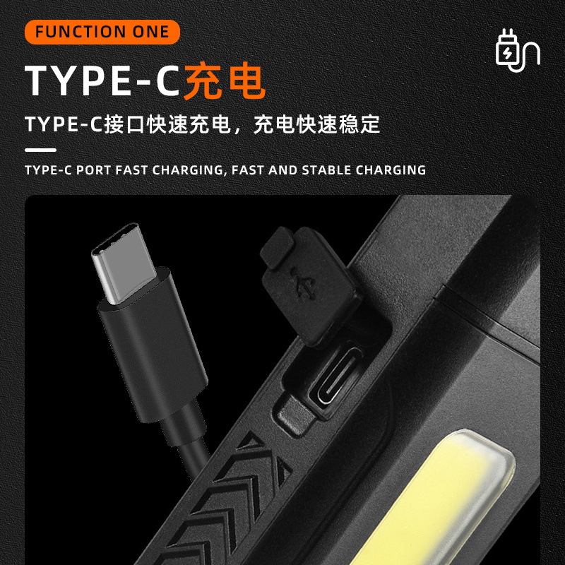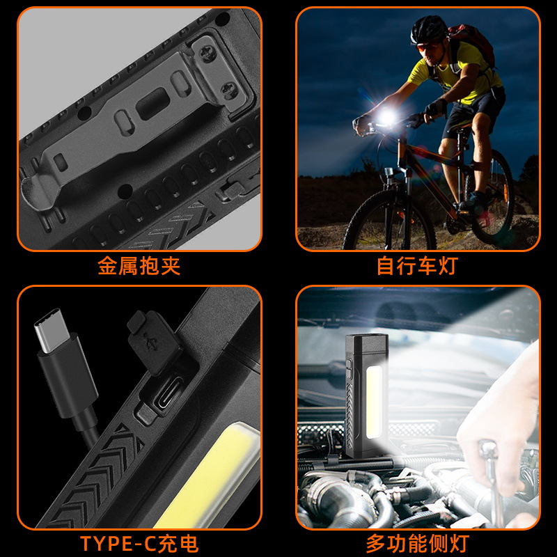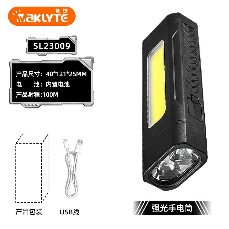 便携USB充电手电筒塑料多功能强光手电筒户外COB侧灯超亮远射