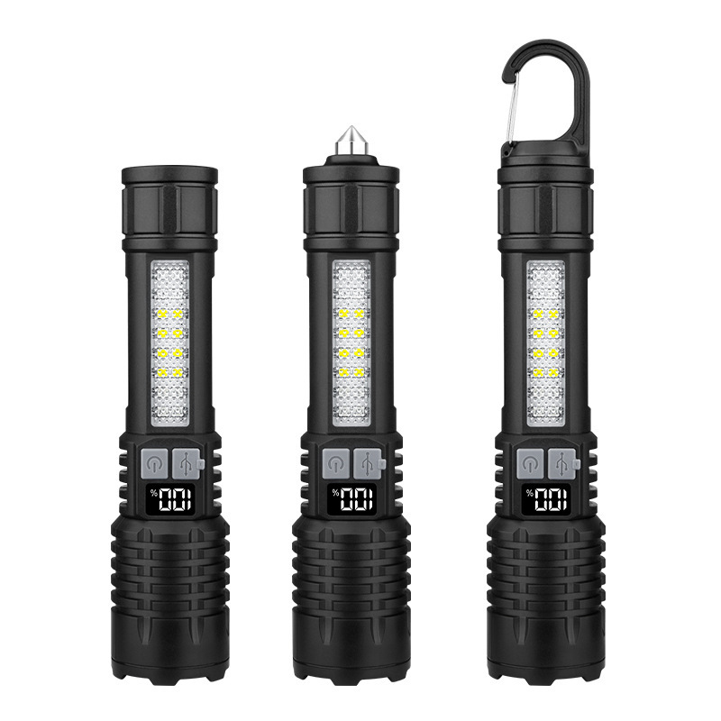 四核充电式变焦/三挡调节/数码电显/割刀+破窗锤