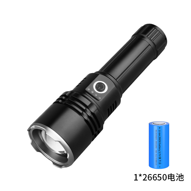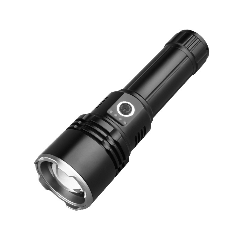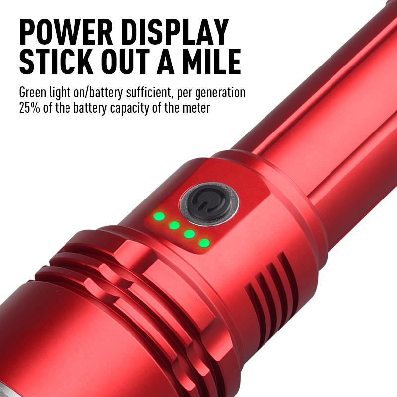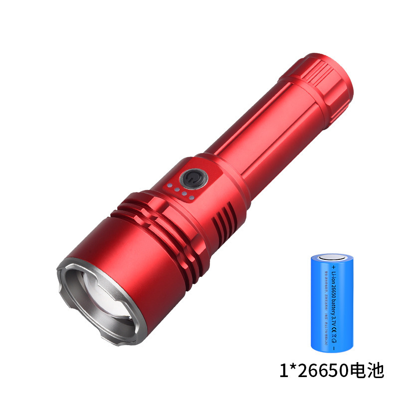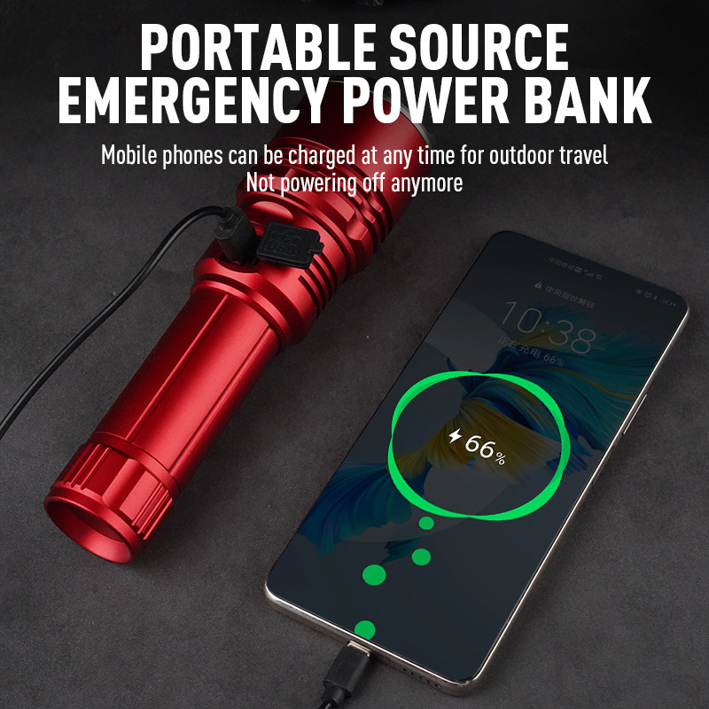 强光充电户外照明便携数显白激光远射伸缩变焦超亮手电筒