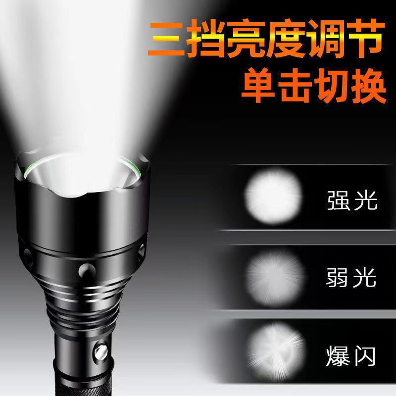 大容量强光防爆手电筒超长待机特种兵野外户外家用消防保安巡逻