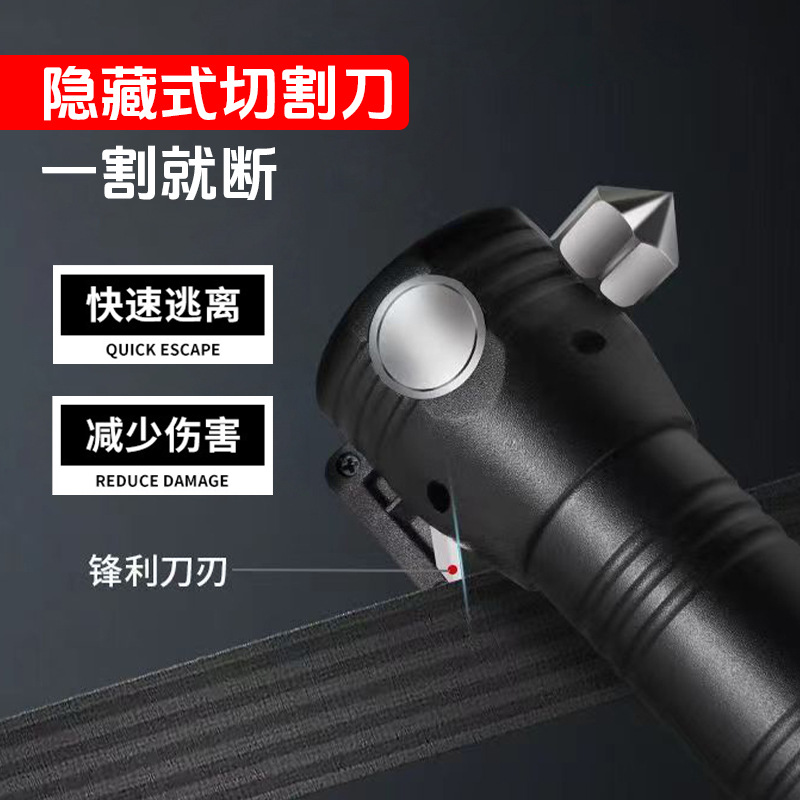 多功能车载手电筒LED太阳能户外应急灯COB强光破窗安全锤