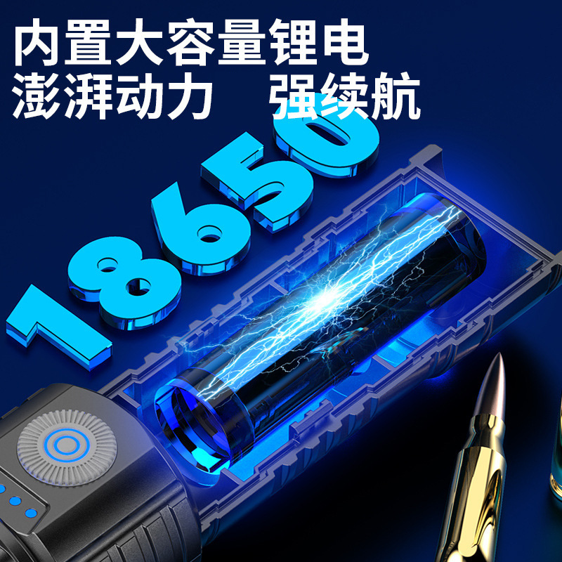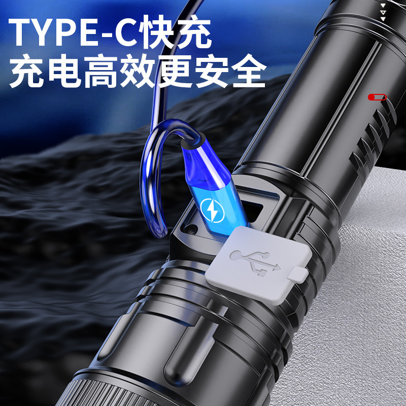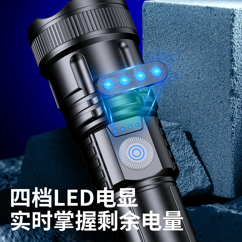 强光手电筒USB充电电量显示家用户外便携夜钓露营强手电筒