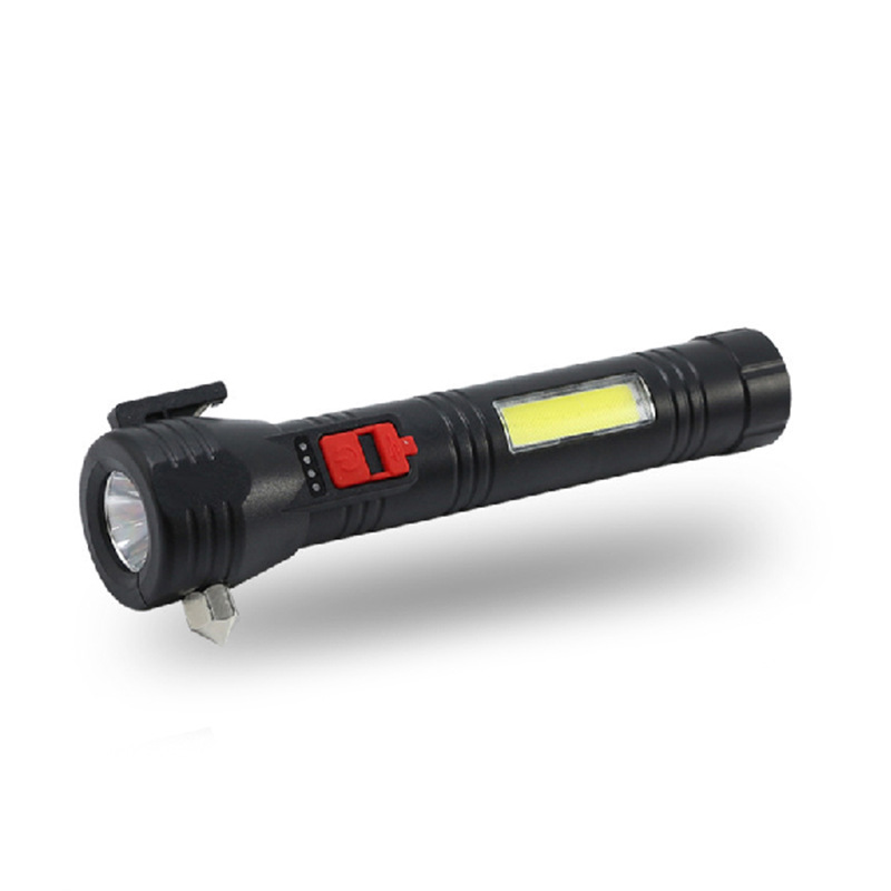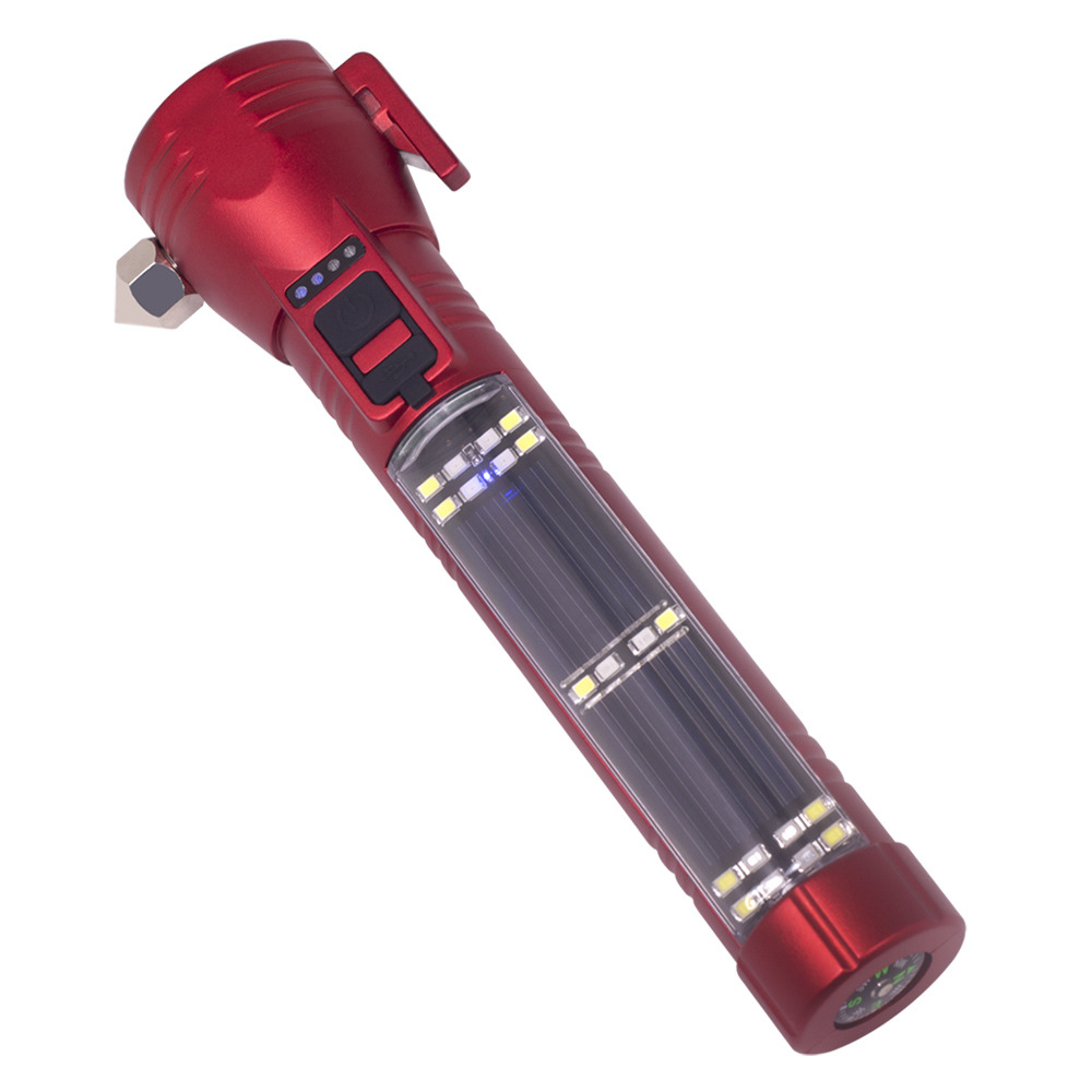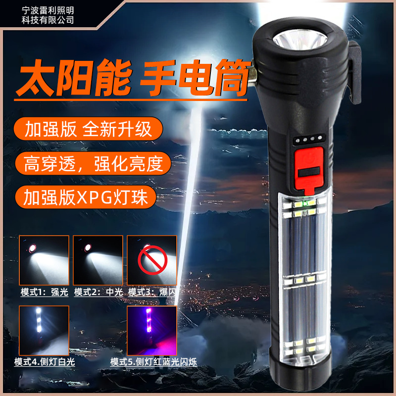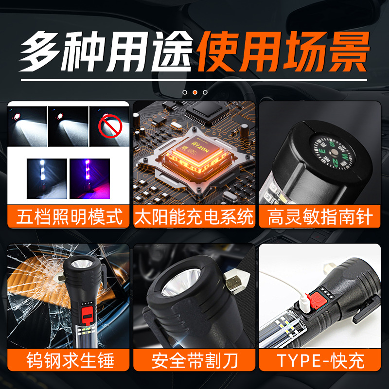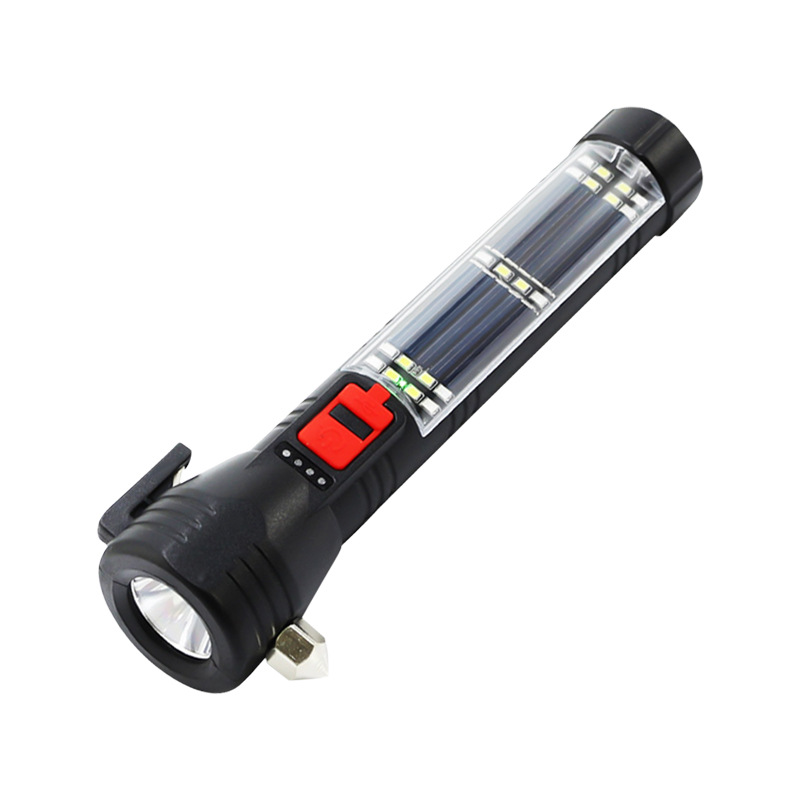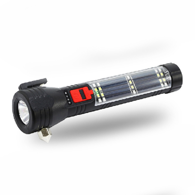 多功能车载手电筒LED太阳能户外应急灯COB强光破窗安全锤