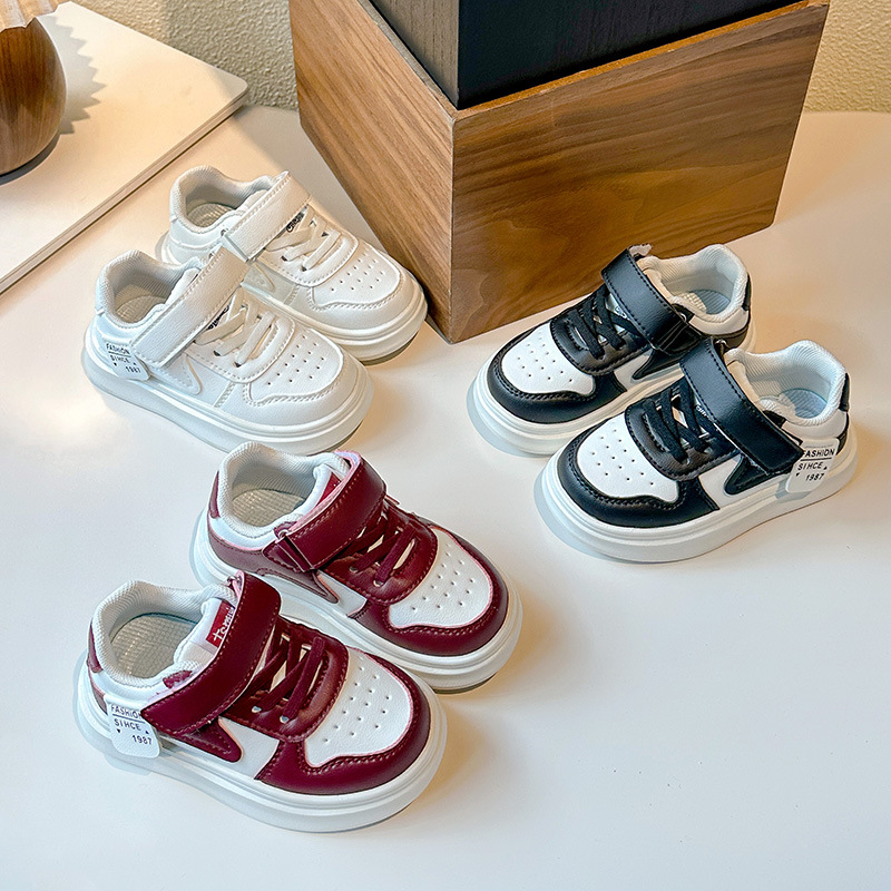 2025春季新款男童时尚皮面板鞋韩版女童单鞋中小童软底宝宝运动鞋