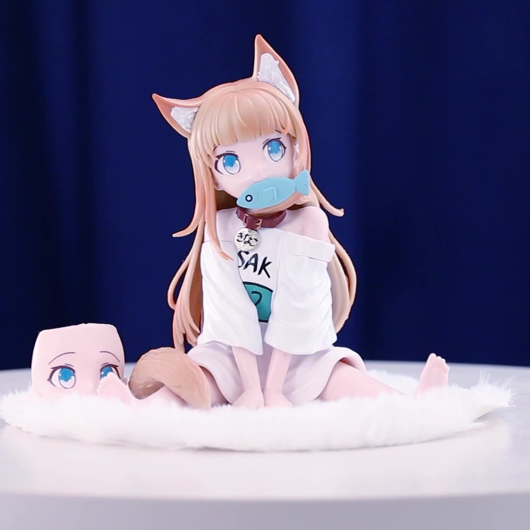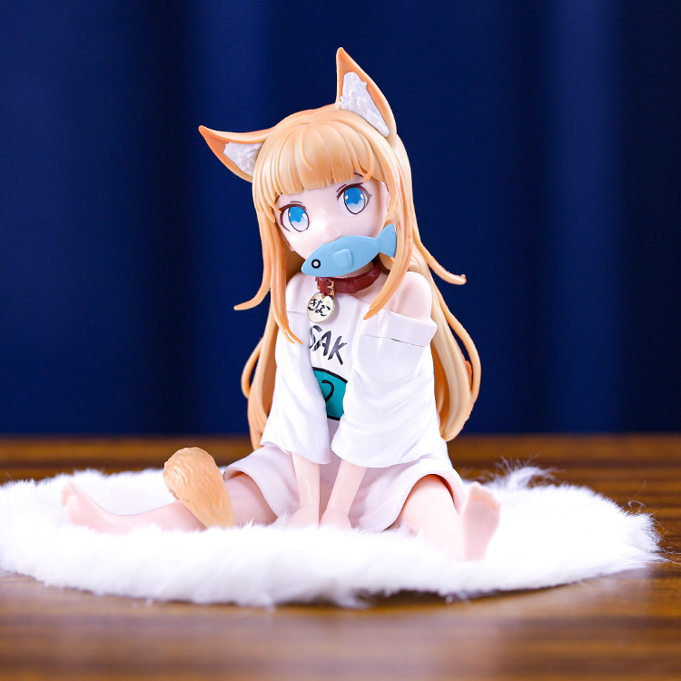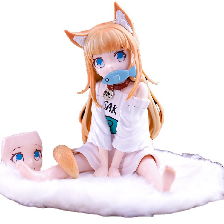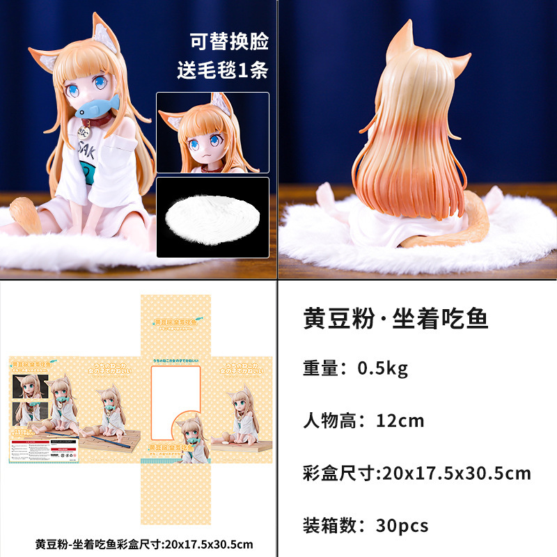 动漫手办美少女可替换脸送毛毯 黄豆粉手办 坐着吃鱼
