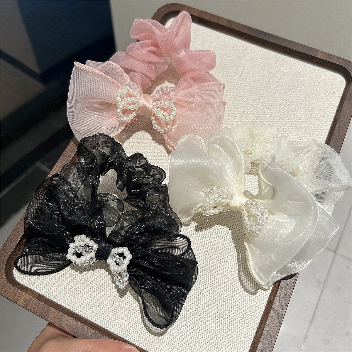 蝴蝶结网纱珍珠大肠发圈韩系甜美扎马尾发绳小清新百搭皮筋发饰女