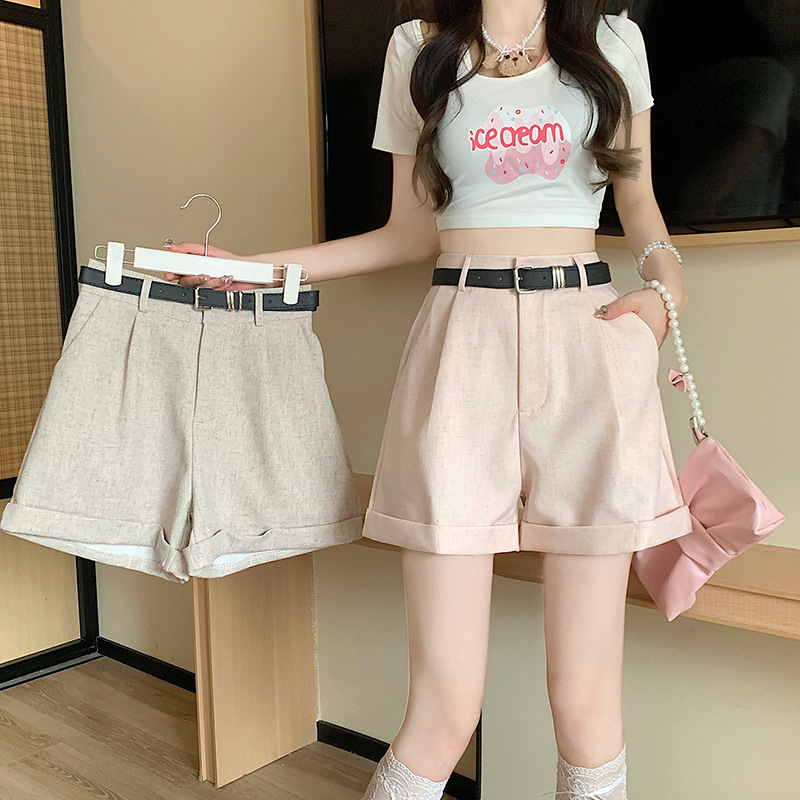 简约百搭休闲纯色热裤夏季高腰短裤女士清凉外穿阔腿短裤子