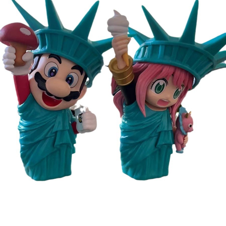 可爱阿尼亚 马里奥 cos 自由女神手办模型雕像桌面摆件机箱车载摆