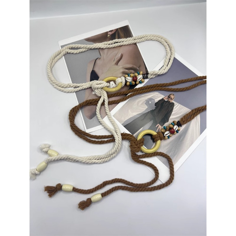 波西米亚米白色编织麻绳腰带女夏季百搭个性装饰腰封女士细ins潮