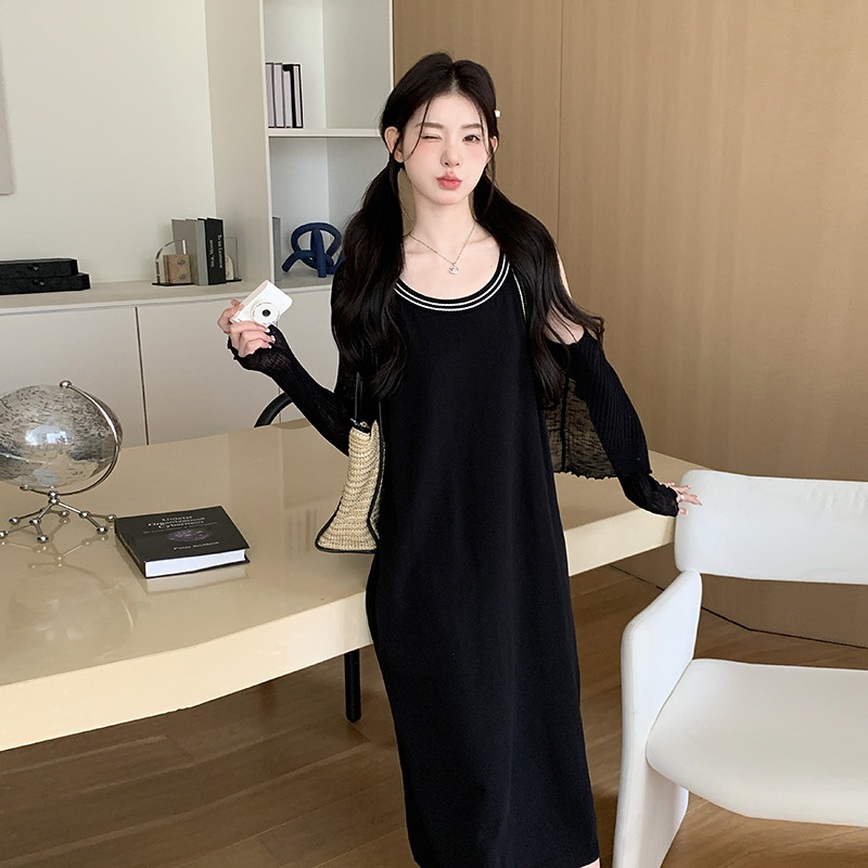 慵懒随性百搭气质冰丝针织套装裙高级感短款开衫背心连衣裙两件套