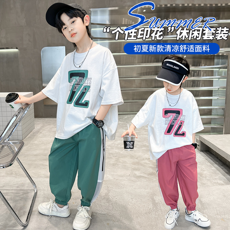 夏装新大男童短袖长裤套装童装儿童男孩t恤两件套潮酷个性童套装