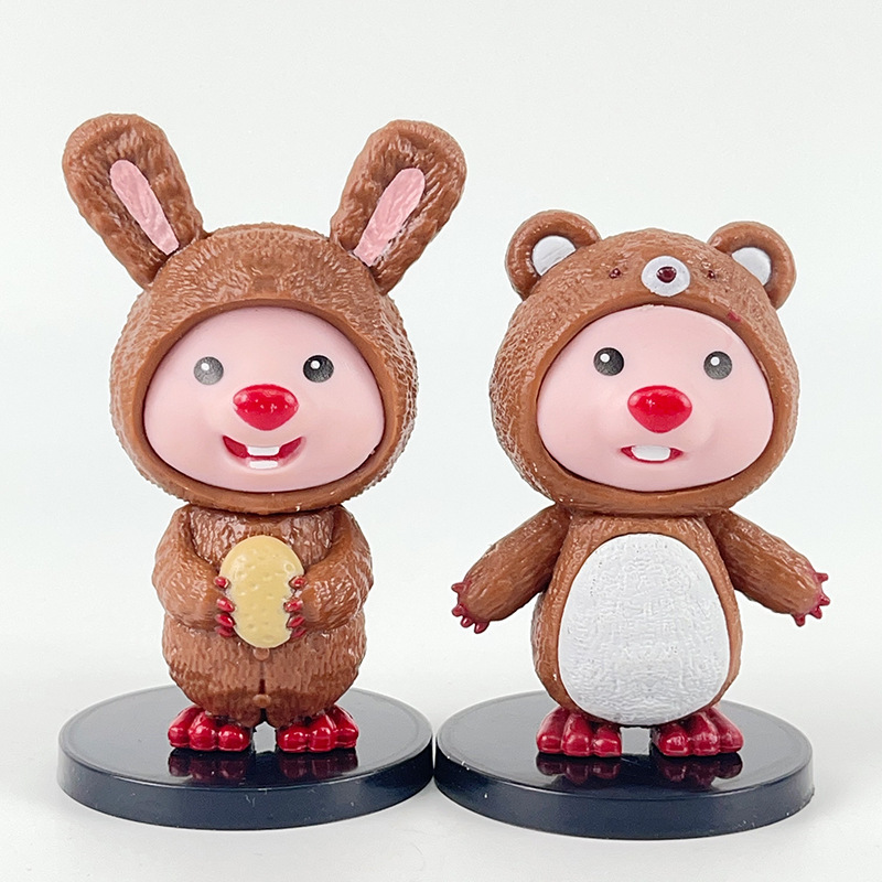 跨境新品 海狸露比动物装盲盒手办 娃娃机粉色小海狸扭蛋动漫周边