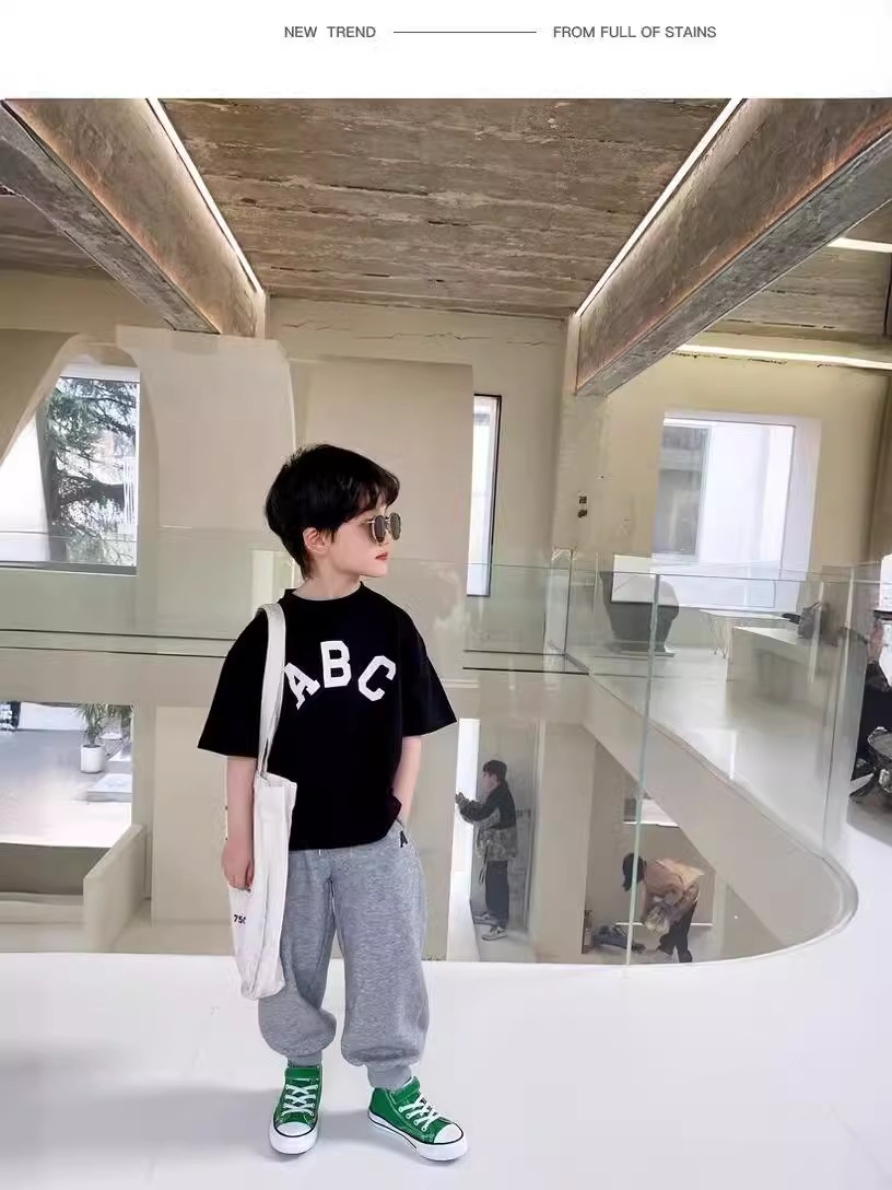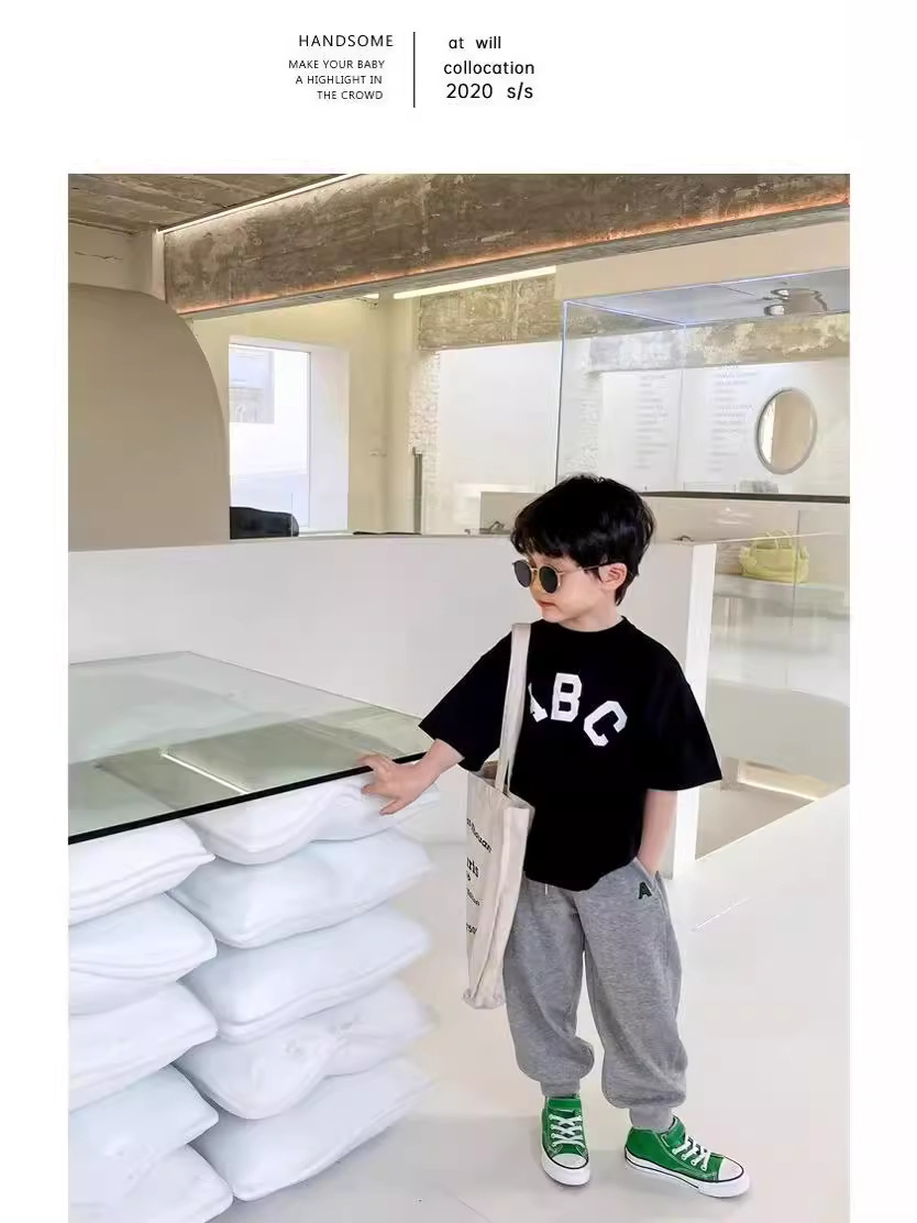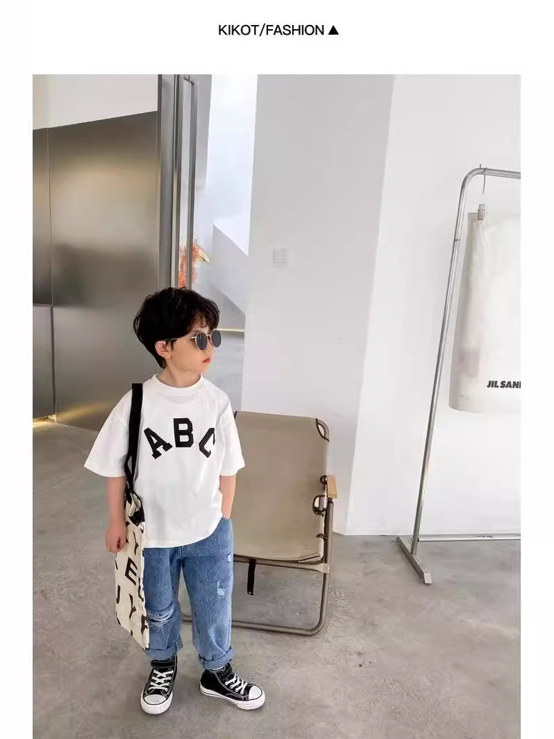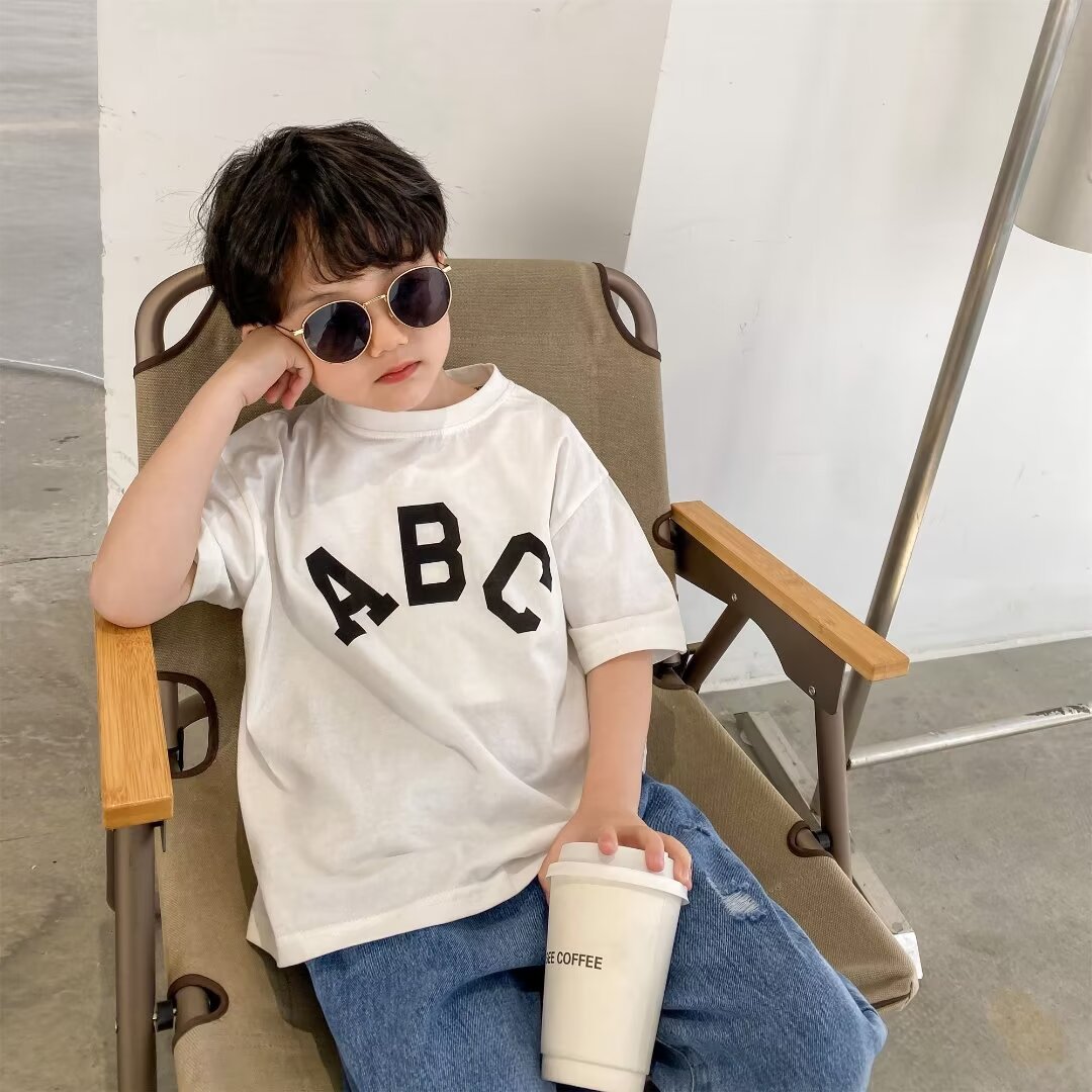 白色短袖T恤男童简约百搭休闲夏季新款圆领潮流字母半袖上衣