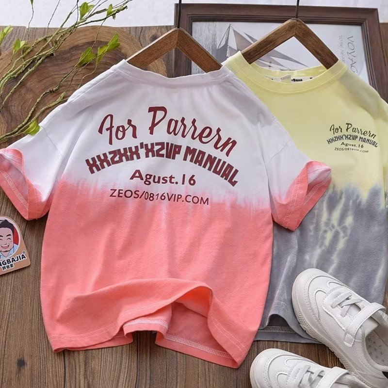 夏装新款韩版童装体恤女童t恤扎染设计女童短袖儿童宽松上衣