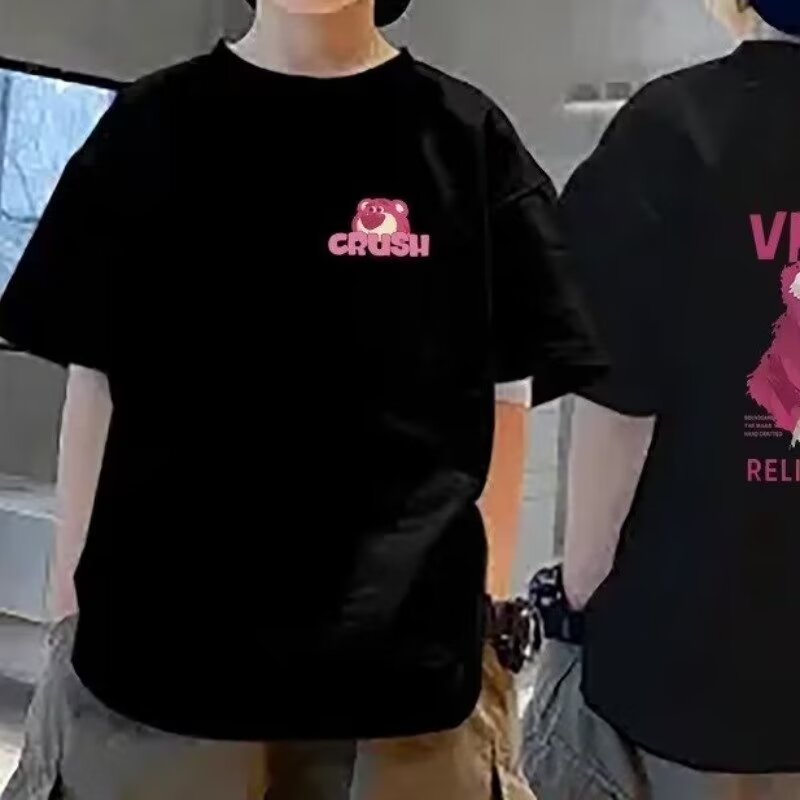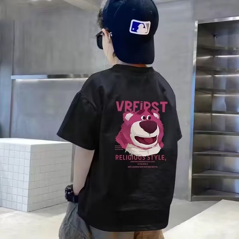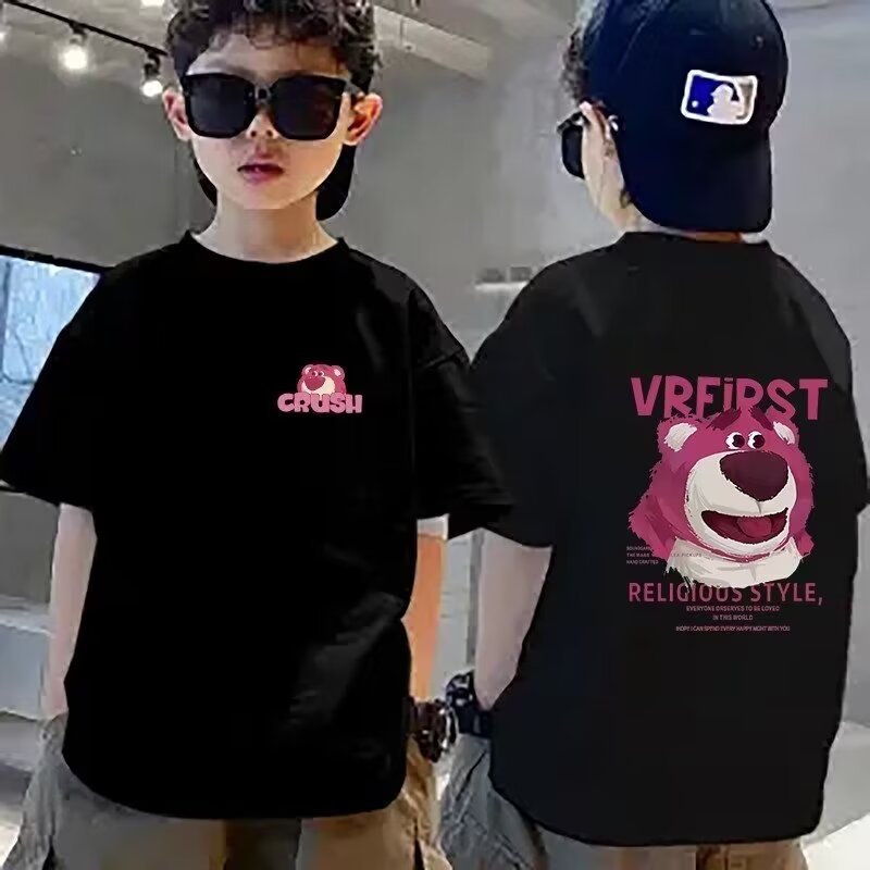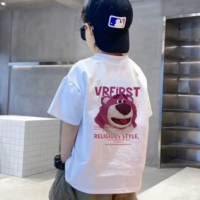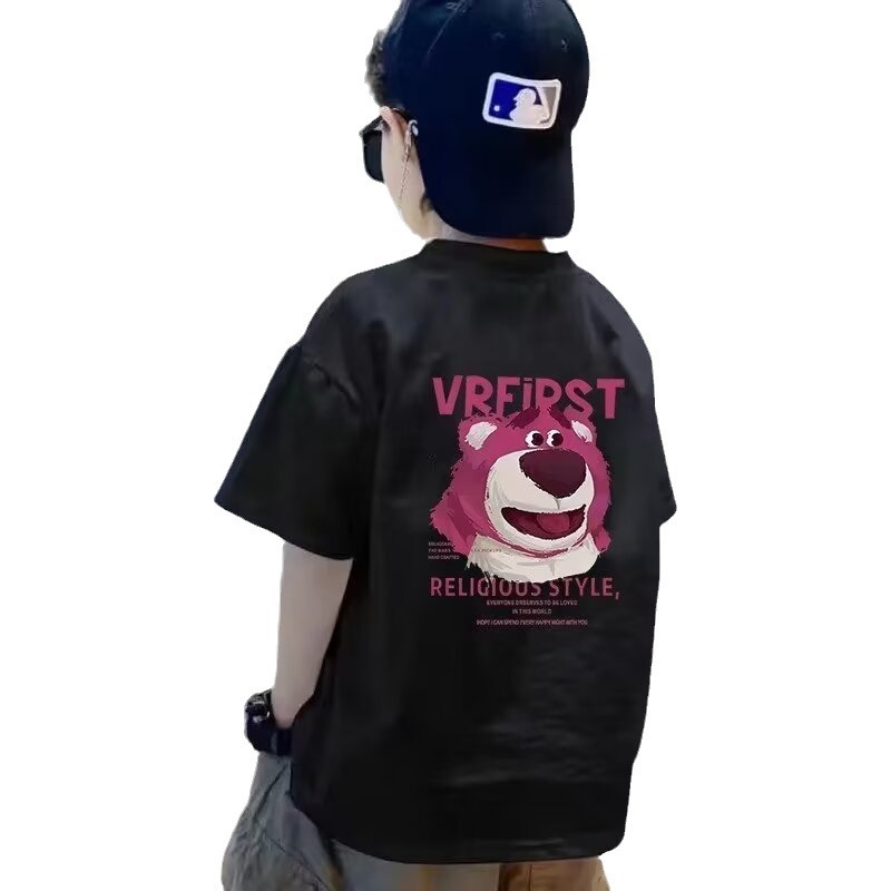 夏季新款男童短袖t恤儿童帅气时髦中大童草莓熊上衣童装体恤跨境