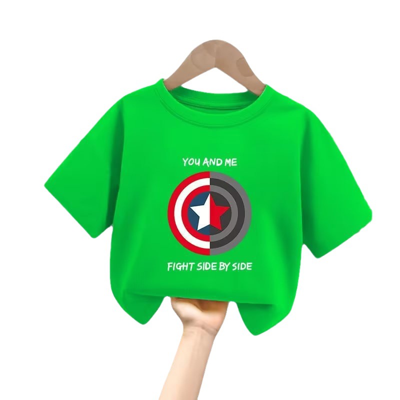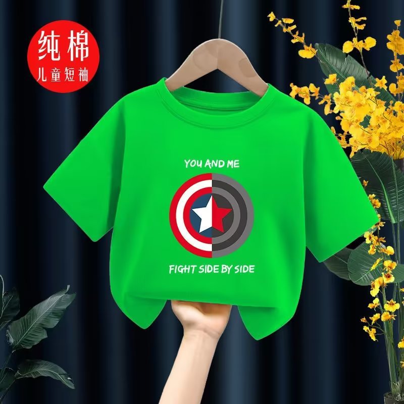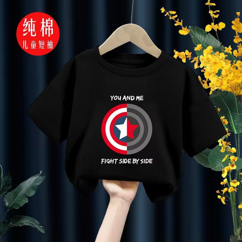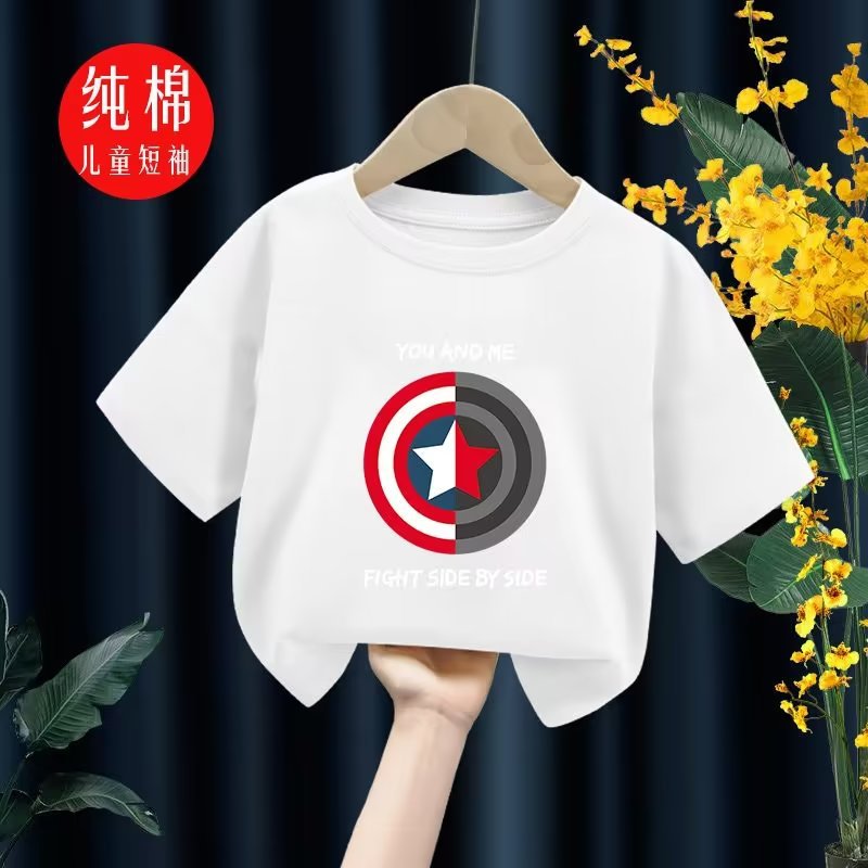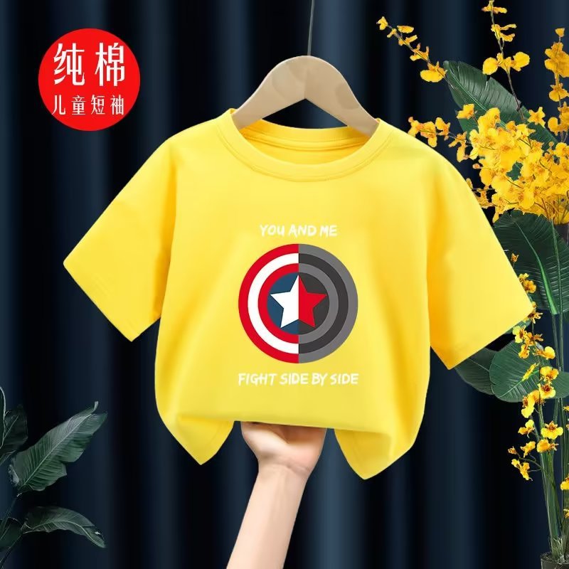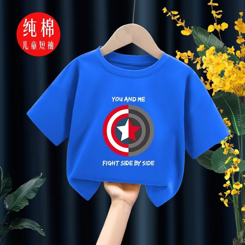新款盾牌短袖夏季男童休闲超人动漫半袖男女宝宝上衣潮牌跨境