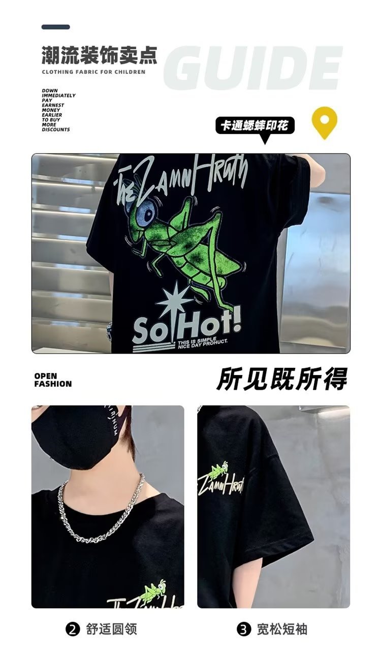 童装T恤短袖男童炸街潮酷个性中大童男孩上衣帅气儿童T恤夏装跨境
