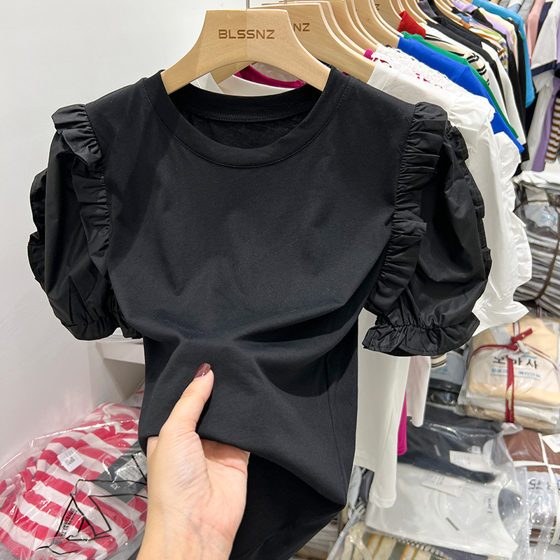 短袖t恤女ins半袖体恤宽松木耳边泡泡袖上衣夏季