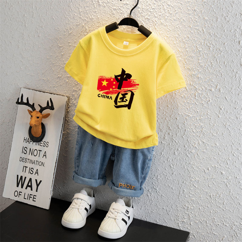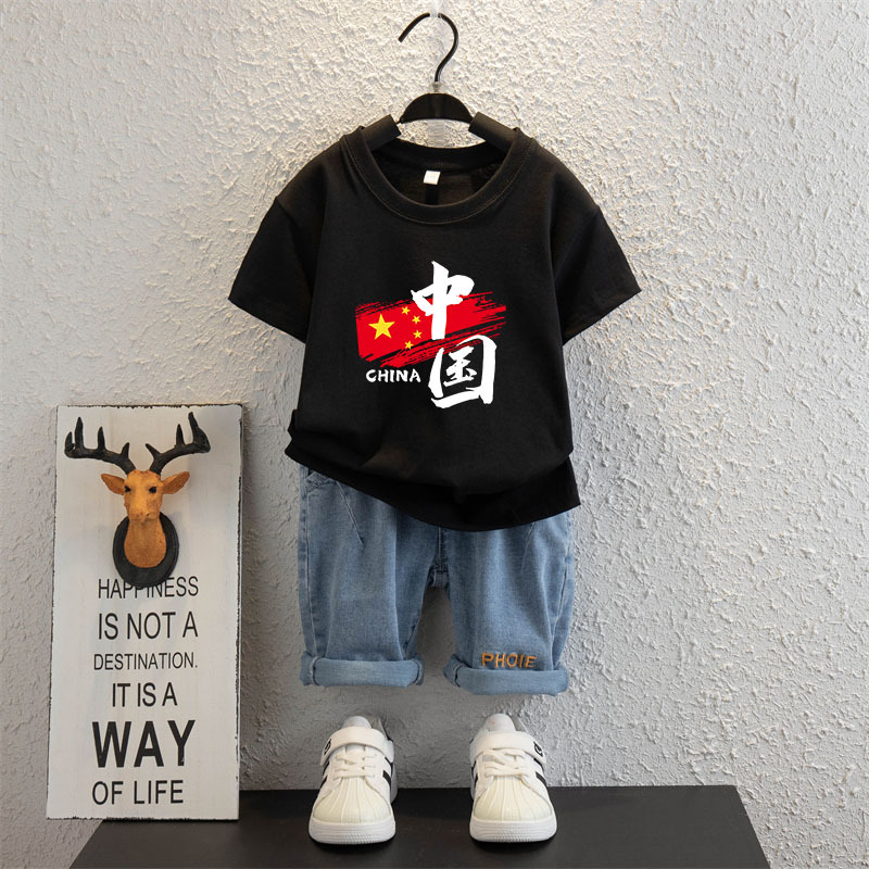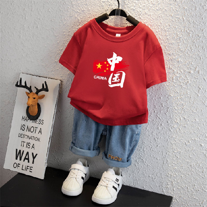 儿童中国潮牌纯棉T恤男童女童新款夏季休闲ins童装班服上衣潮