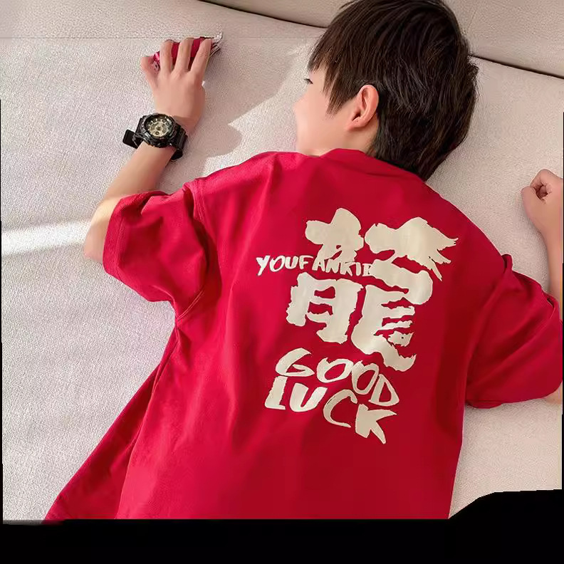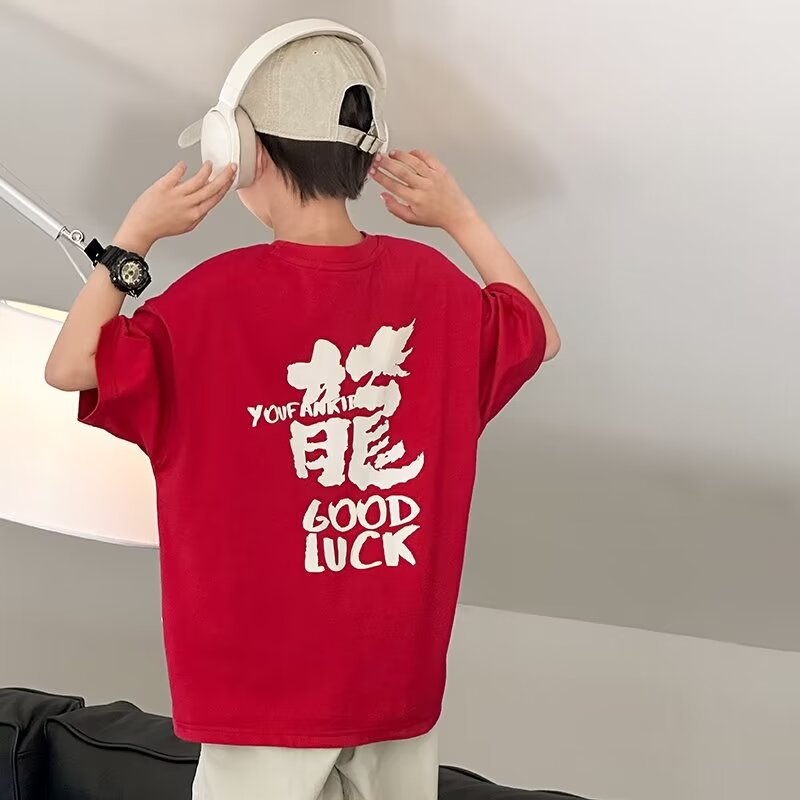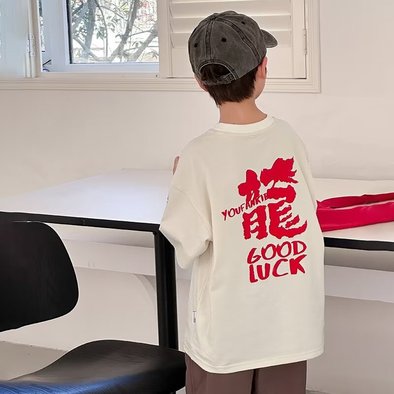 童装夏新款重磅精梳棉国潮印花宽松短袖男童潮流亲肤t恤半袖上衣