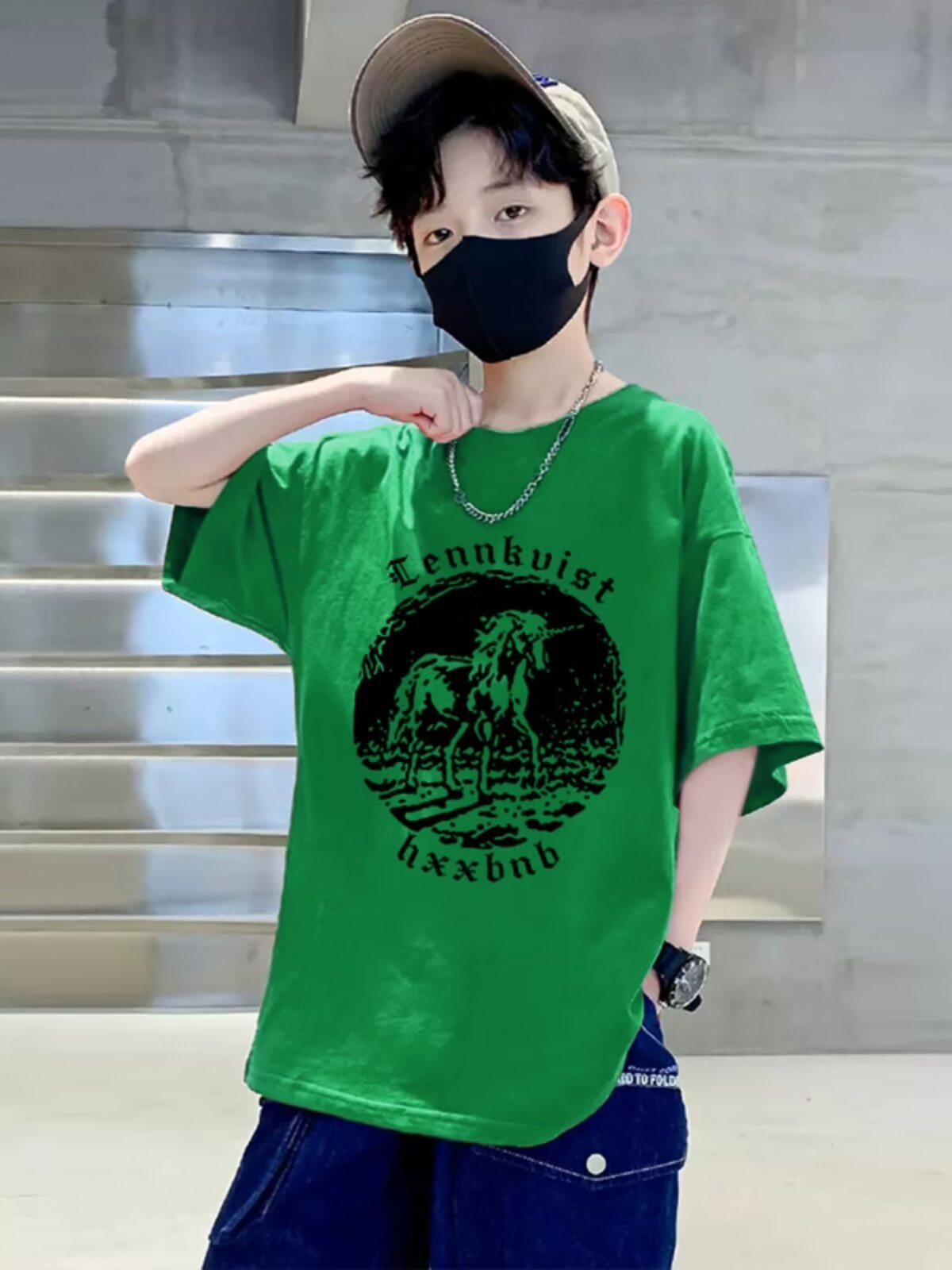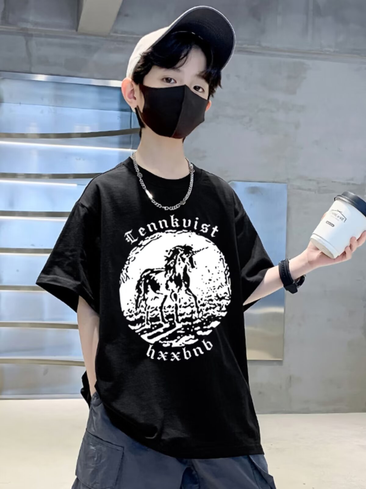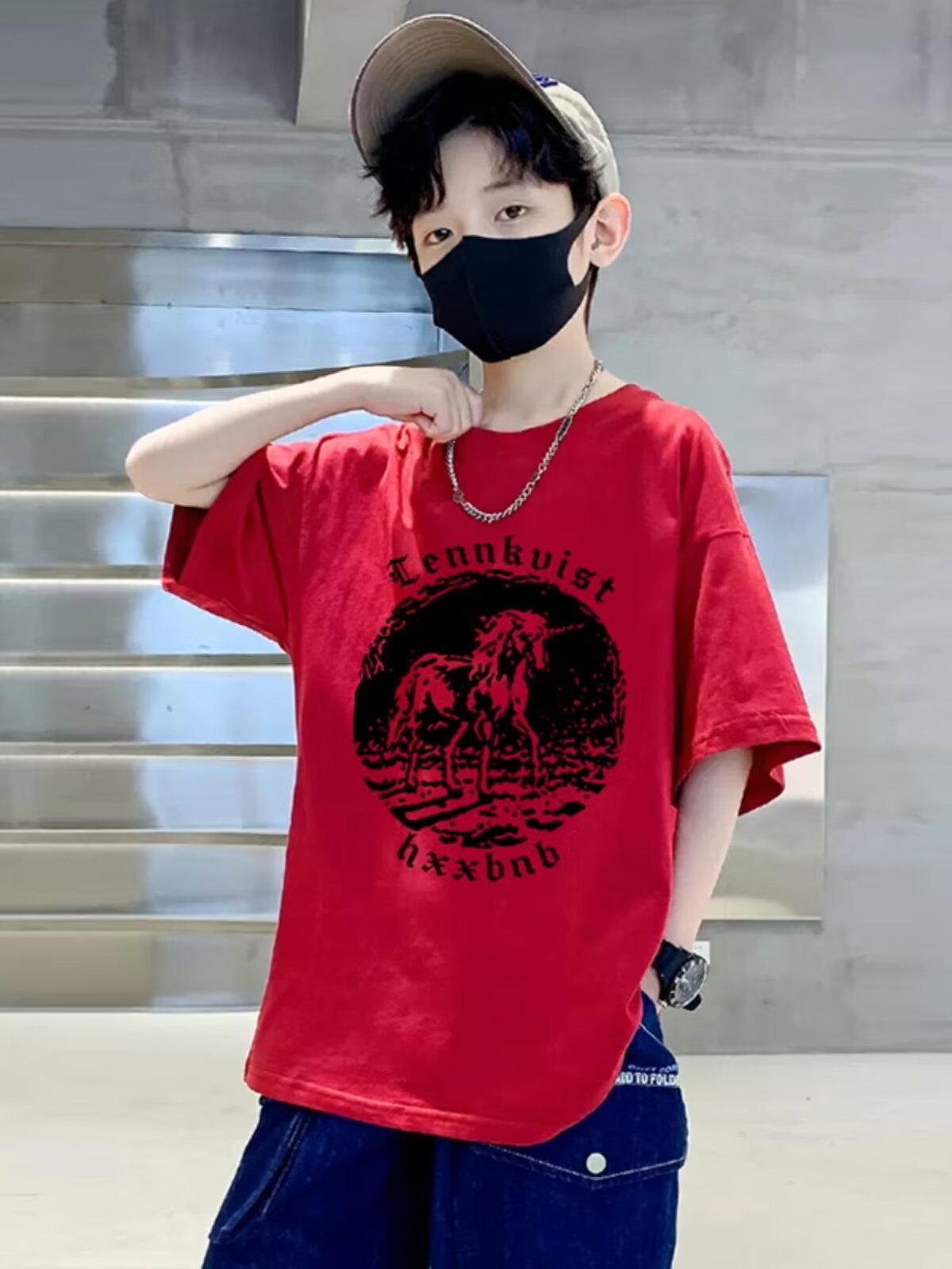男童t恤短袖棉质夏季新款中大童半袖潮酷儿童炸街上衣夏童装